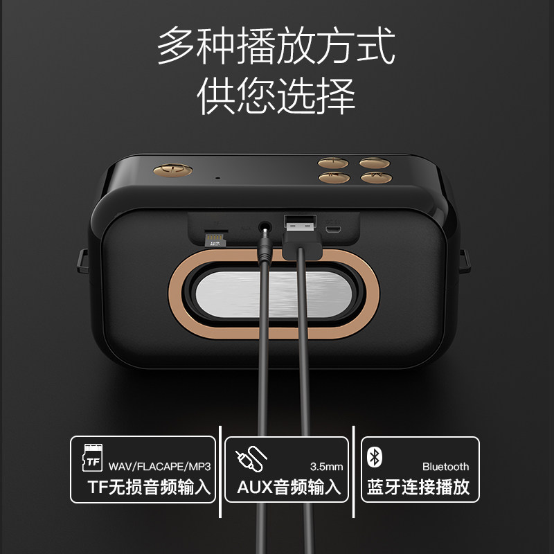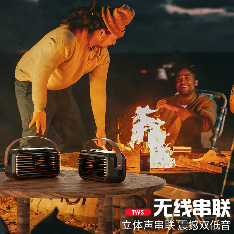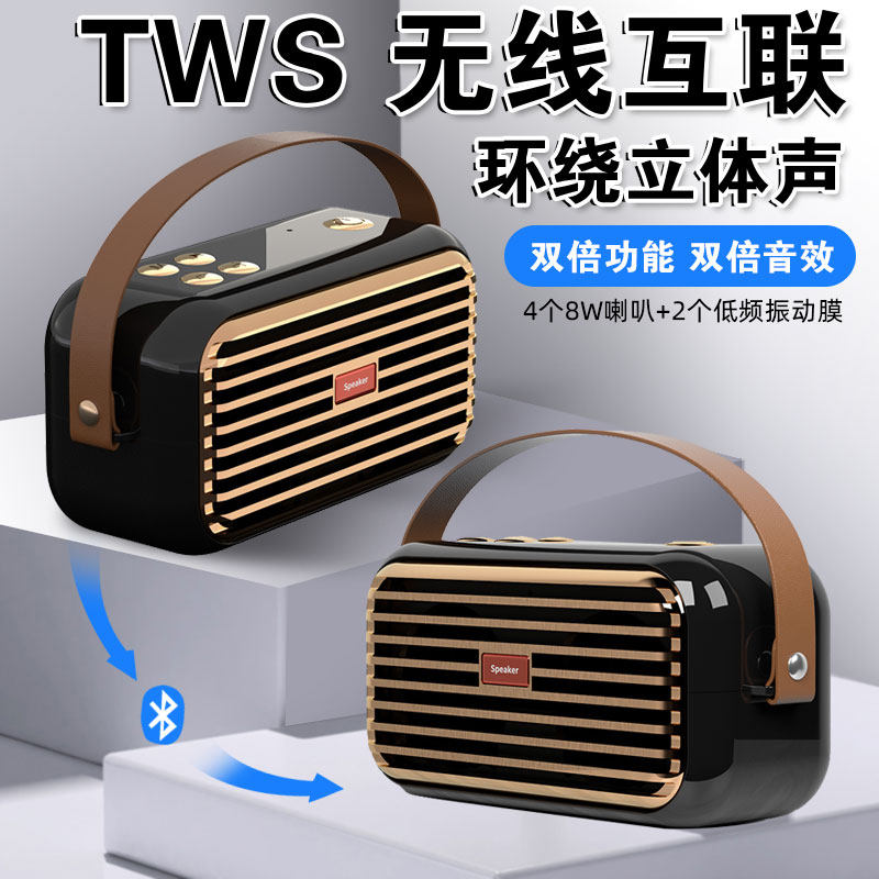 📚 新款无线一拖二蓝牙音箱高品质重低音环绕立体声插卡复古便携音响
