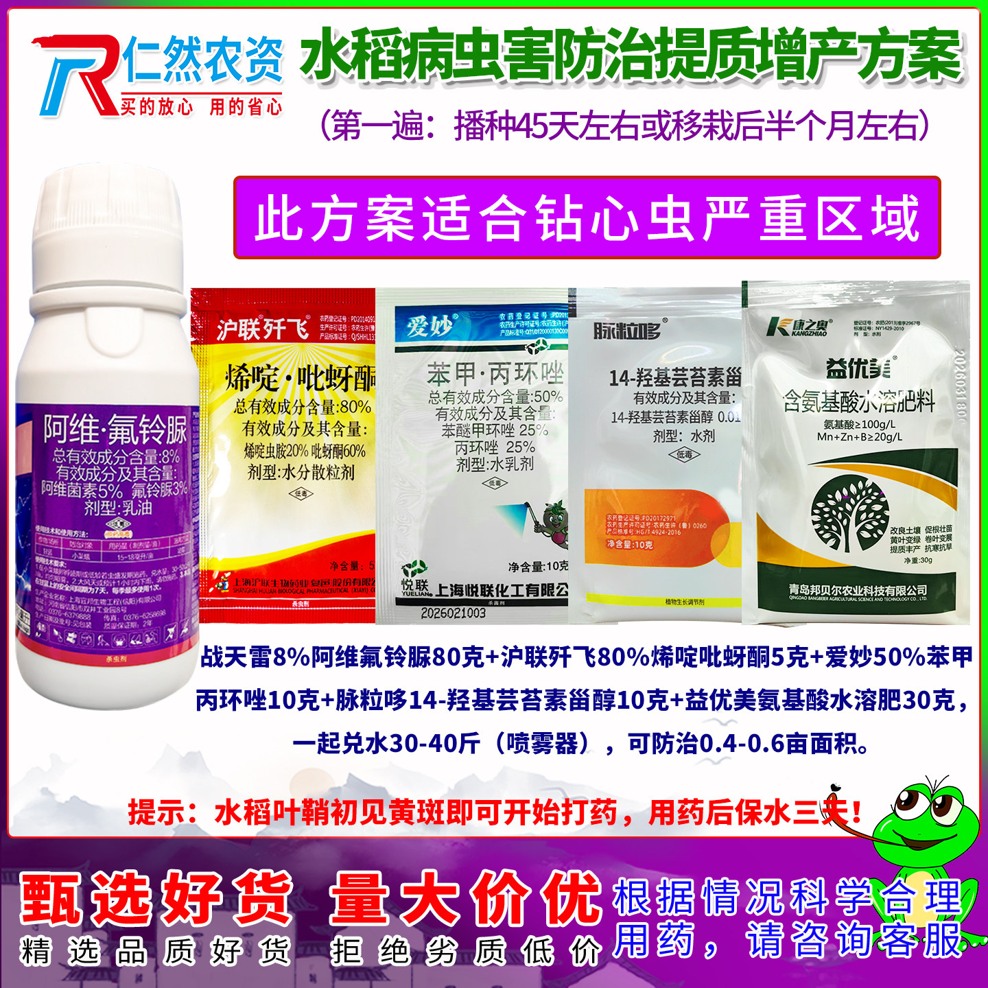 📚 水稻杀虫防病提质增产三遍药适合钻心虫偏重发生地杀虫杀菌补营养