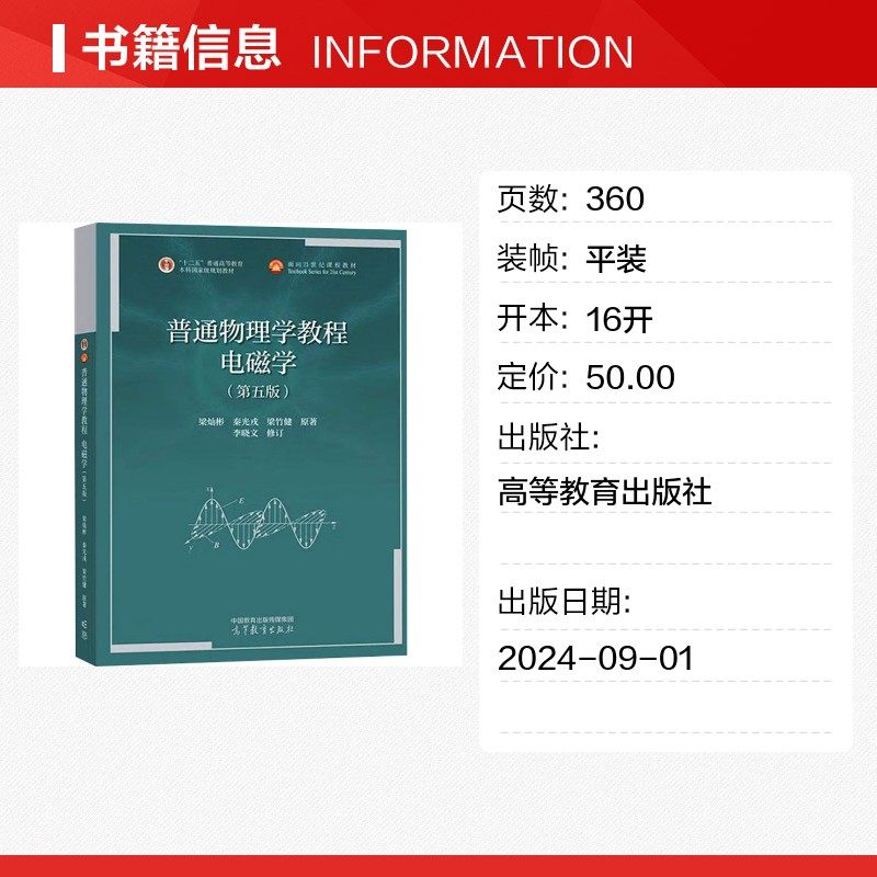 📚 普通物理学教程 电磁学(第五版) 梁灿彬,秦光戎,梁竹健 著 大学教材大中专 新华书店正版图书籍 高等教育出版社