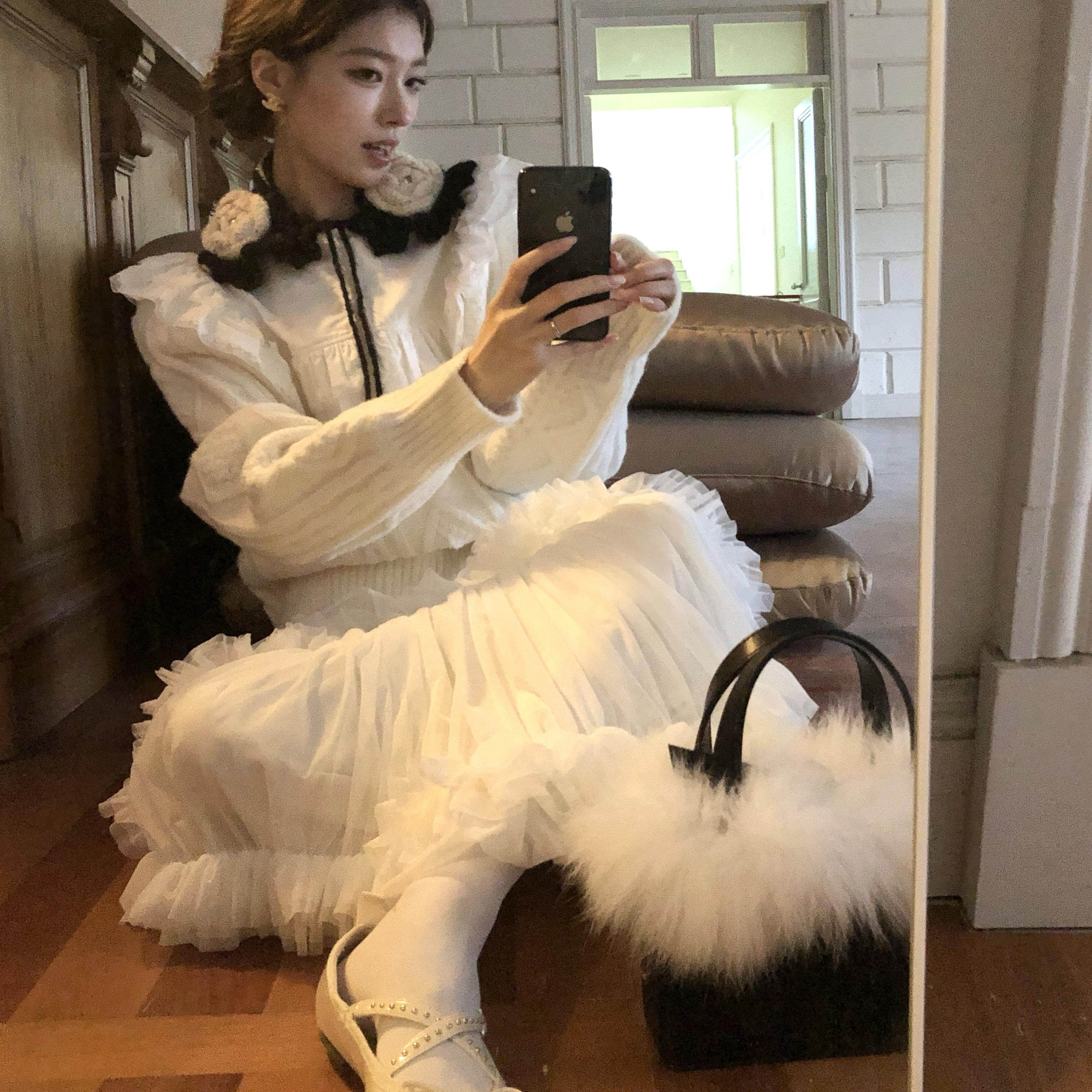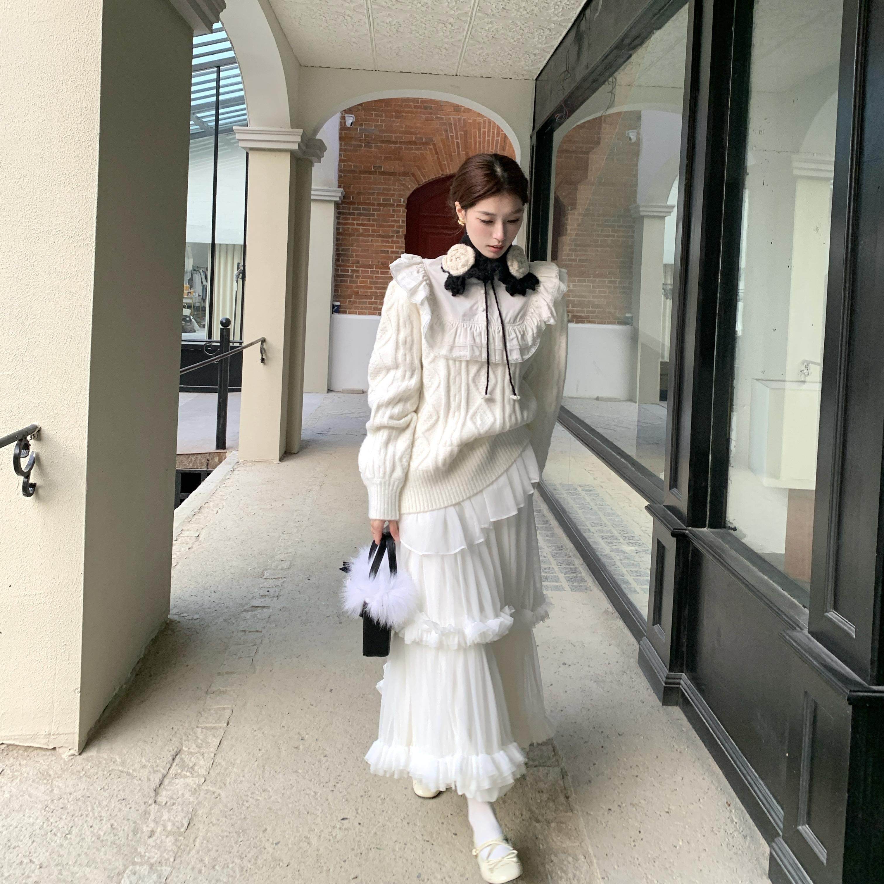 📚 SourceWithU 莉莉安 纯棉韩剧女主拼接假两件上衣羊毛奶团子毛衣