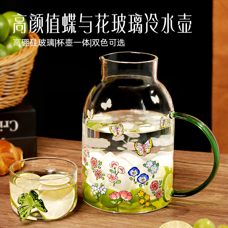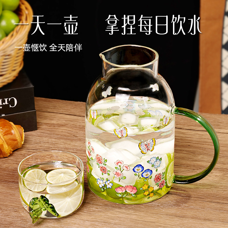 📚 小清新玻璃冷水壶耐高温凉水壶杯子大容量家用带盖泡茶玻璃冷饮杯