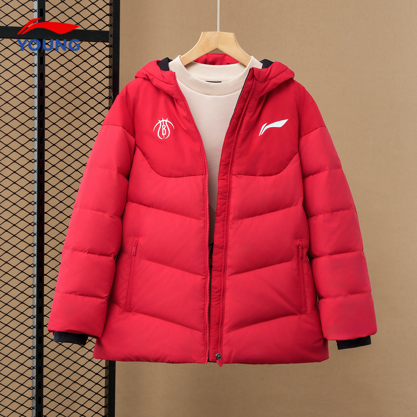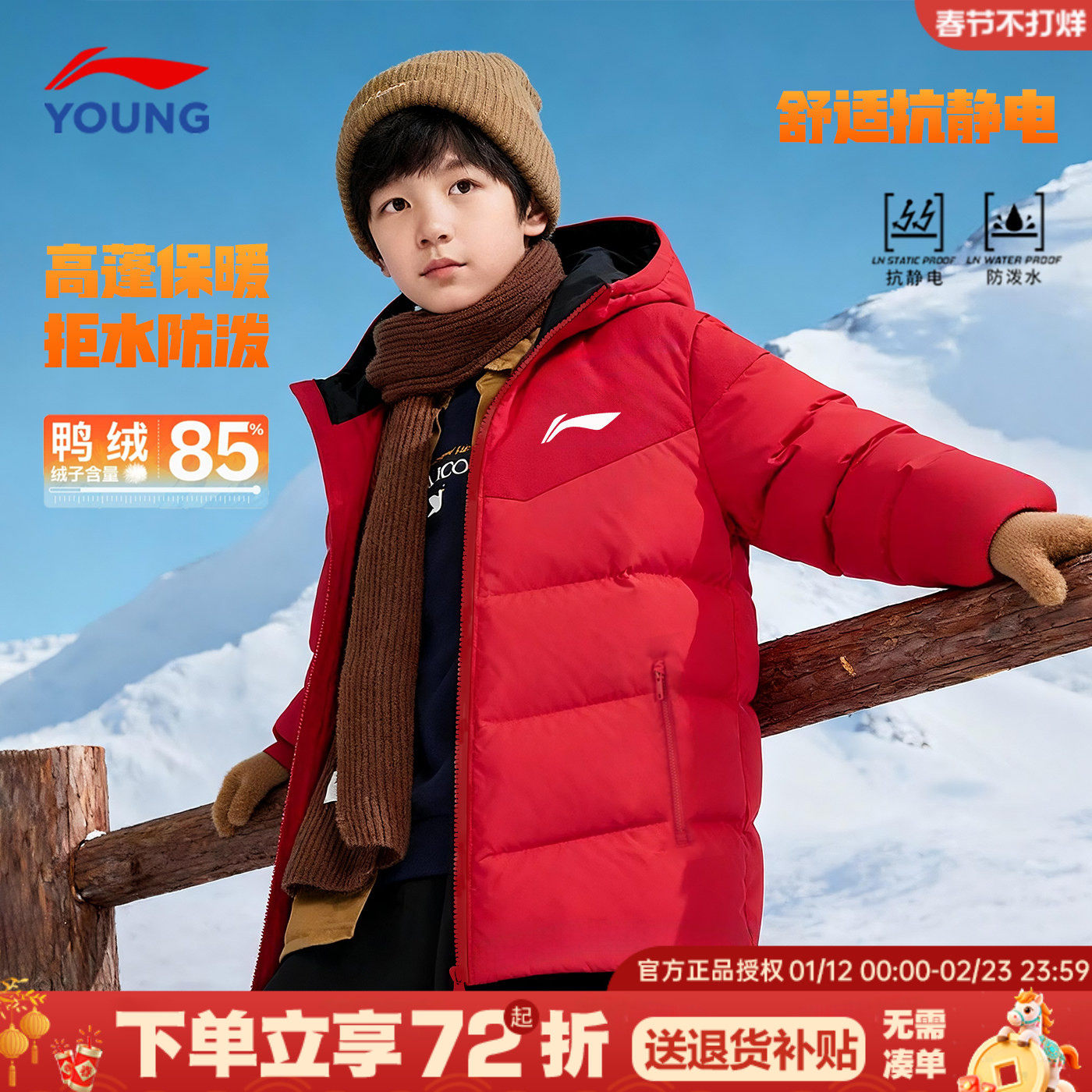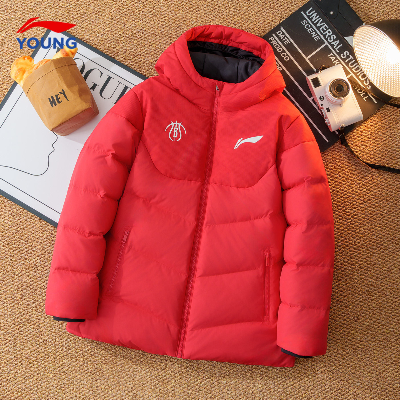 📚 李宁儿童羽绒服男童冬季正品中大童青少年商场同款红色加厚外套