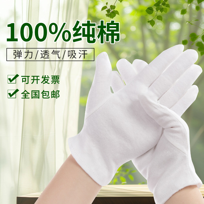 📚 白手套纯棉女礼仪冬季加厚文玩盘珠开车工作作业干活劳保耐磨汗布