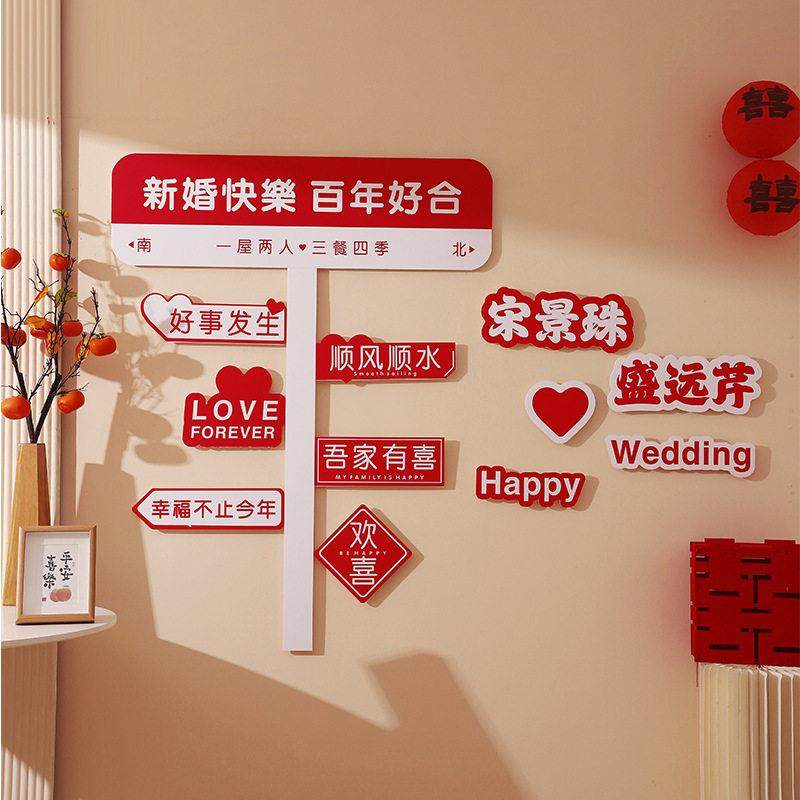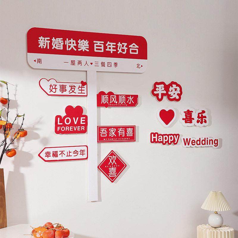 📚 结婚路牌KT板喜字婚房布置套装男女方婚礼背景墙装饰婚庆用品大全