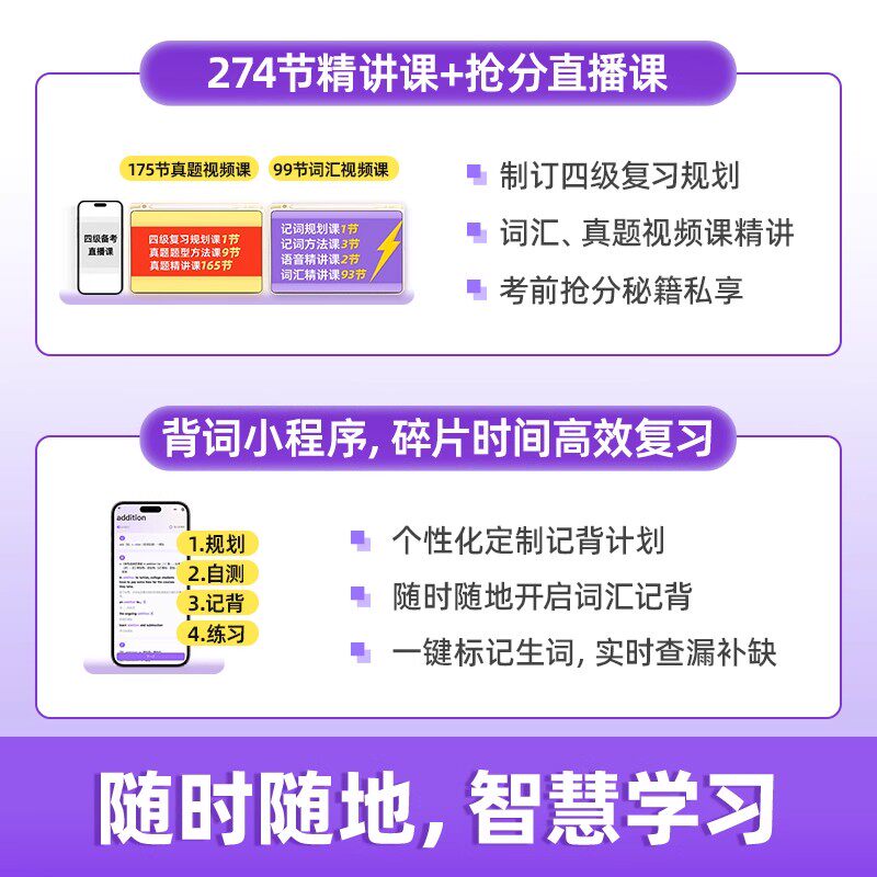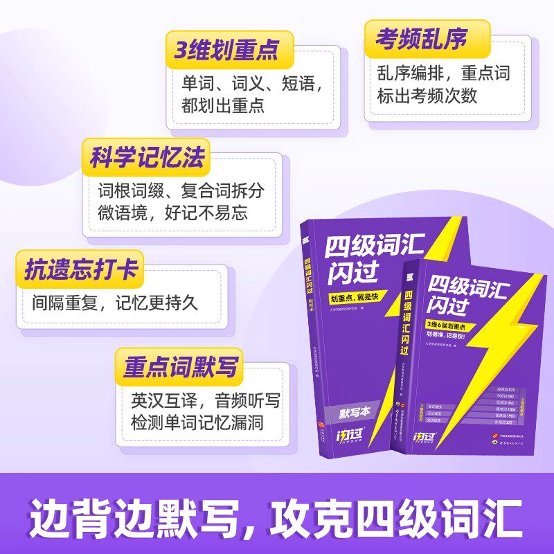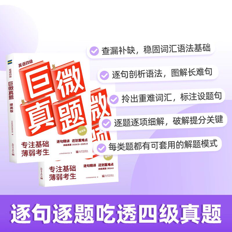 📚 备考2026年6月巨微英语四级考试真题逐句精解 大学cet4历年真题试卷模拟专项训练资料单词默写本 四六级词汇书闪过