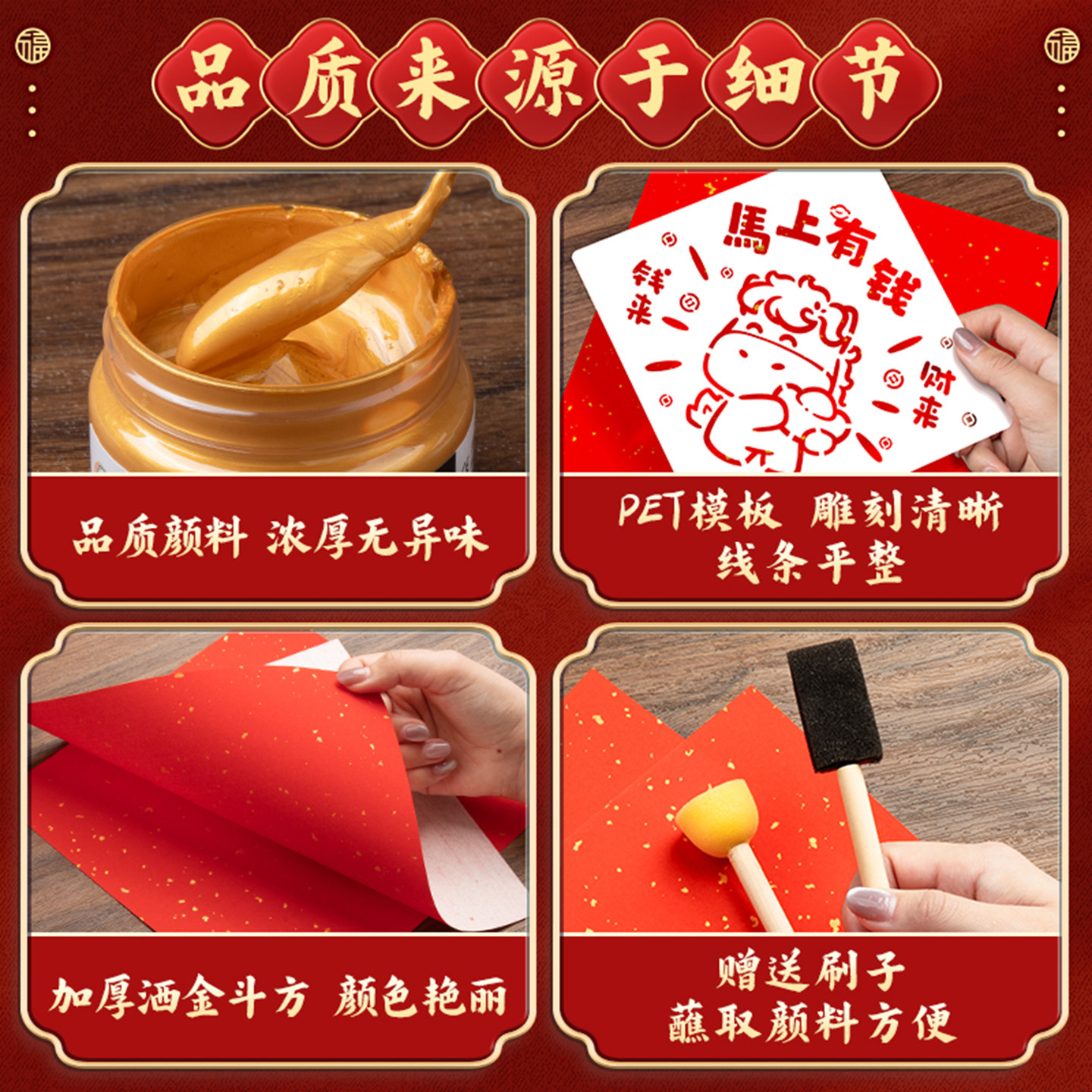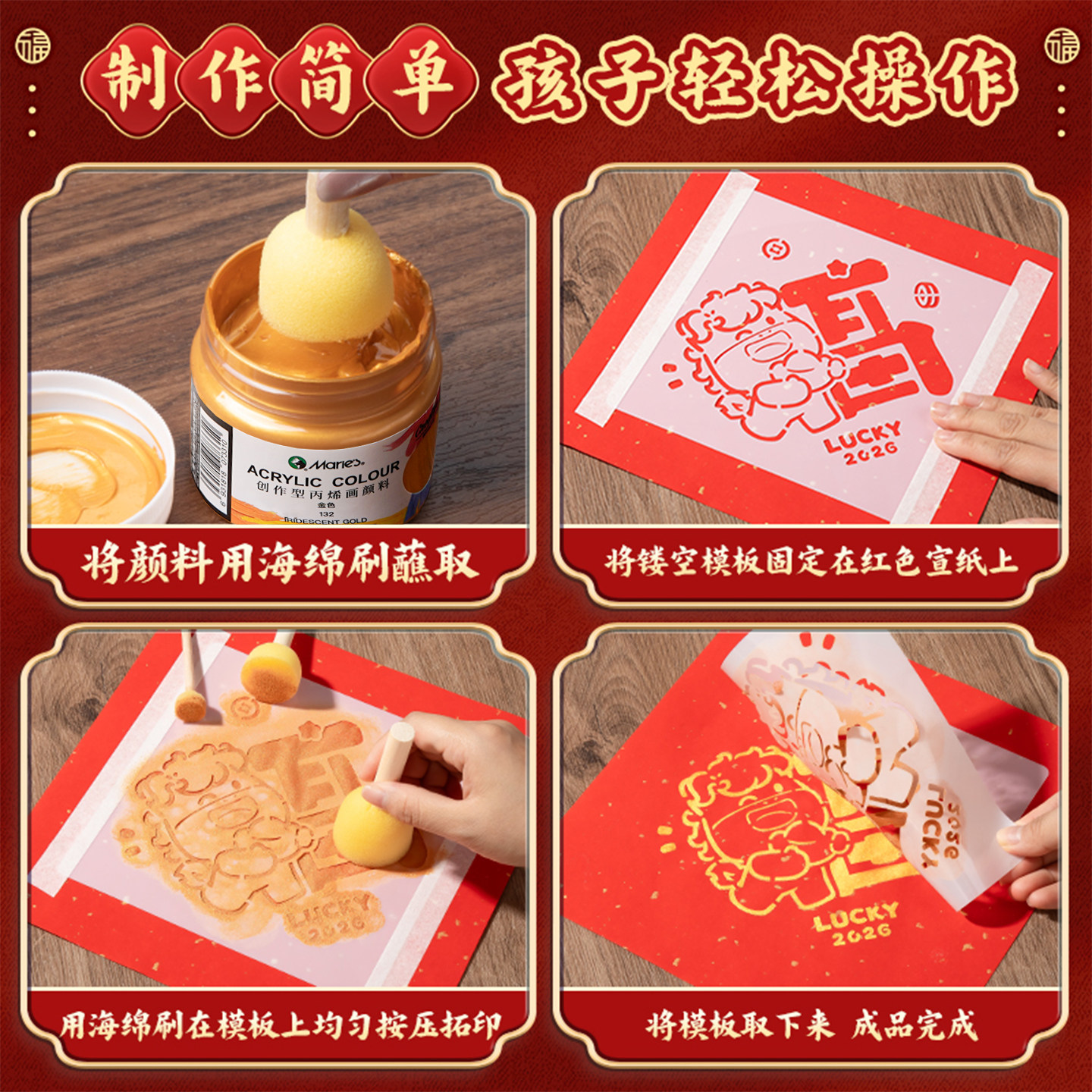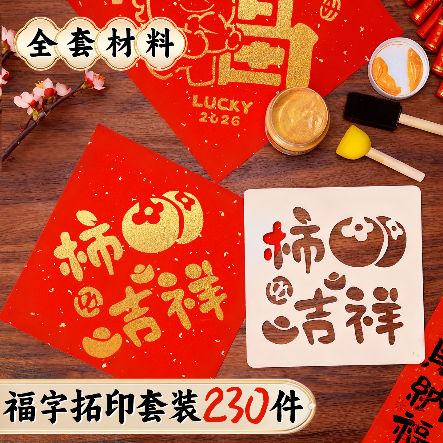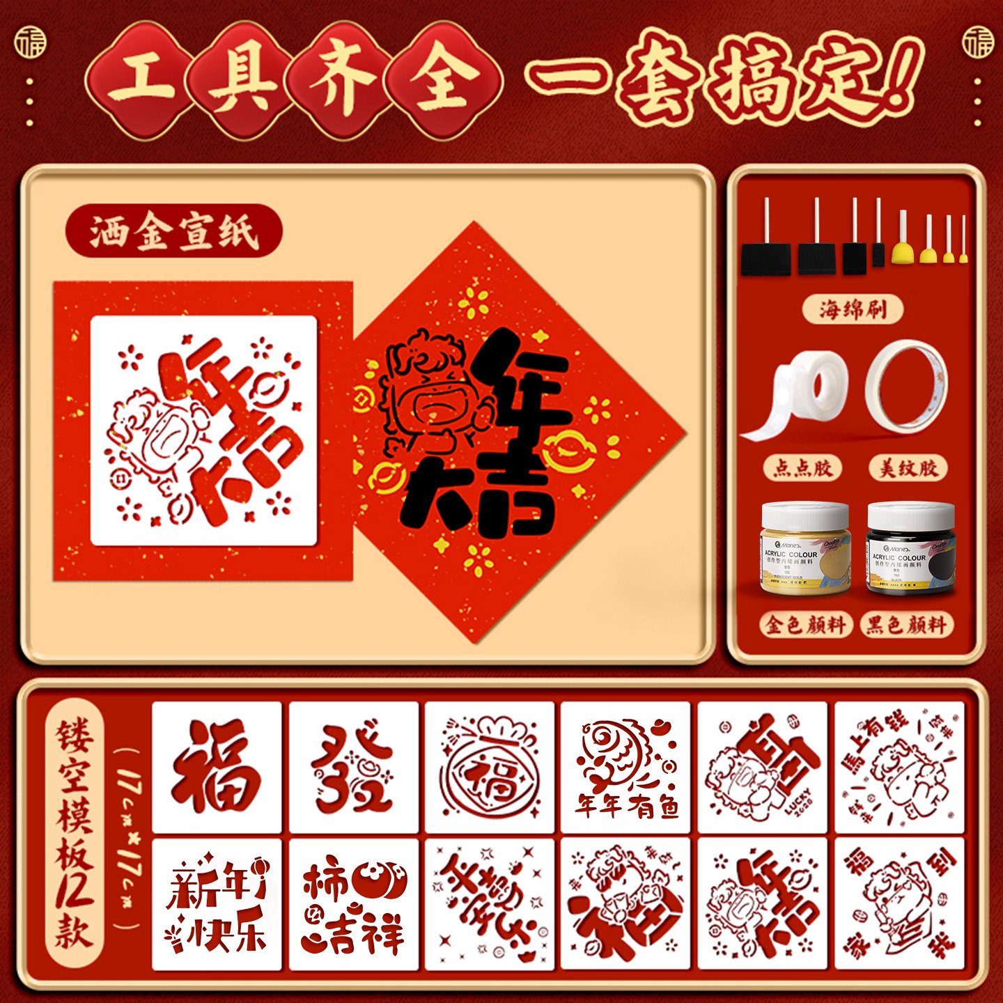 📚 福字拓印套装2026春节马年新款手写diy万年红宣纸小学生自写春联材料包幼儿园空白小斗方洒金福纸新年春联纸