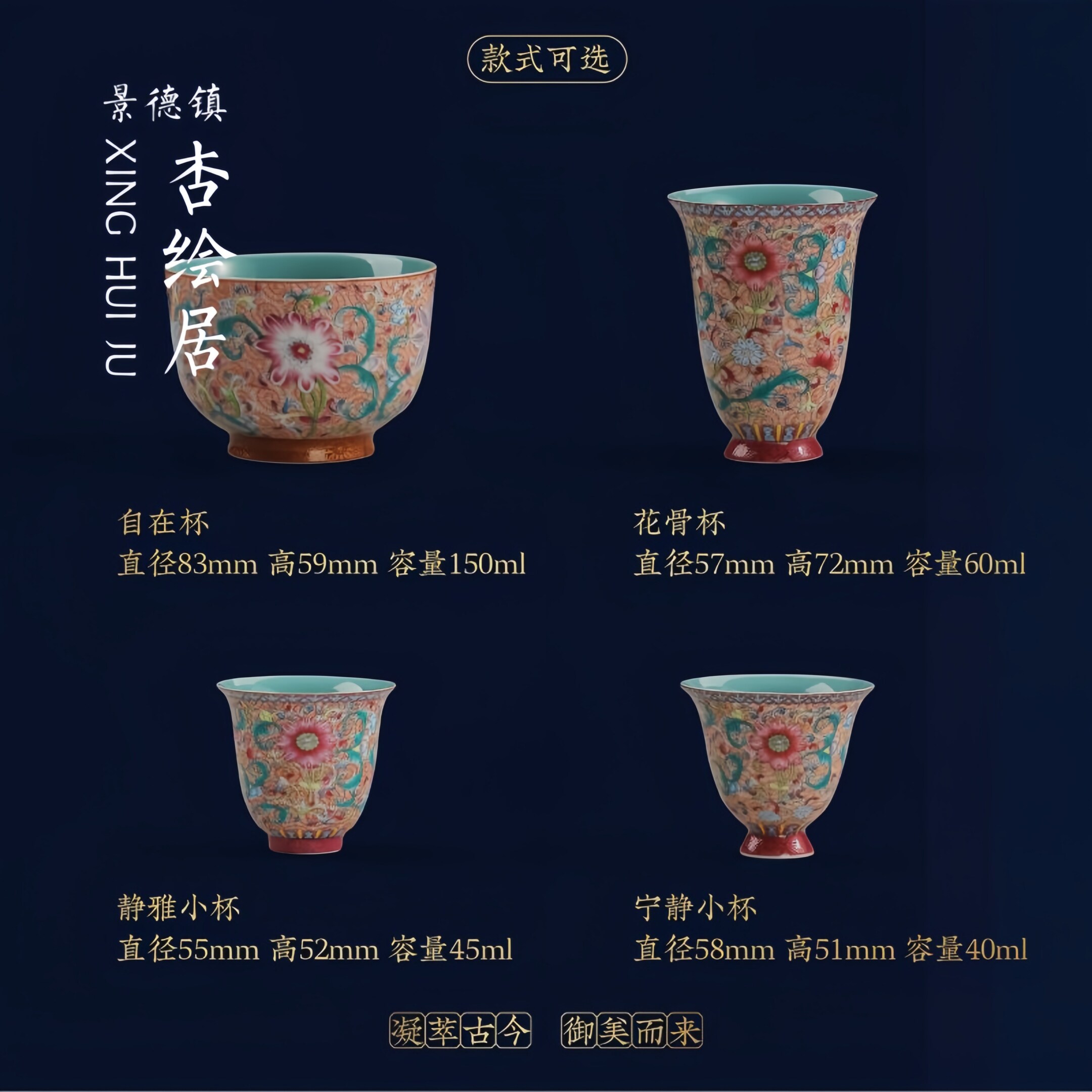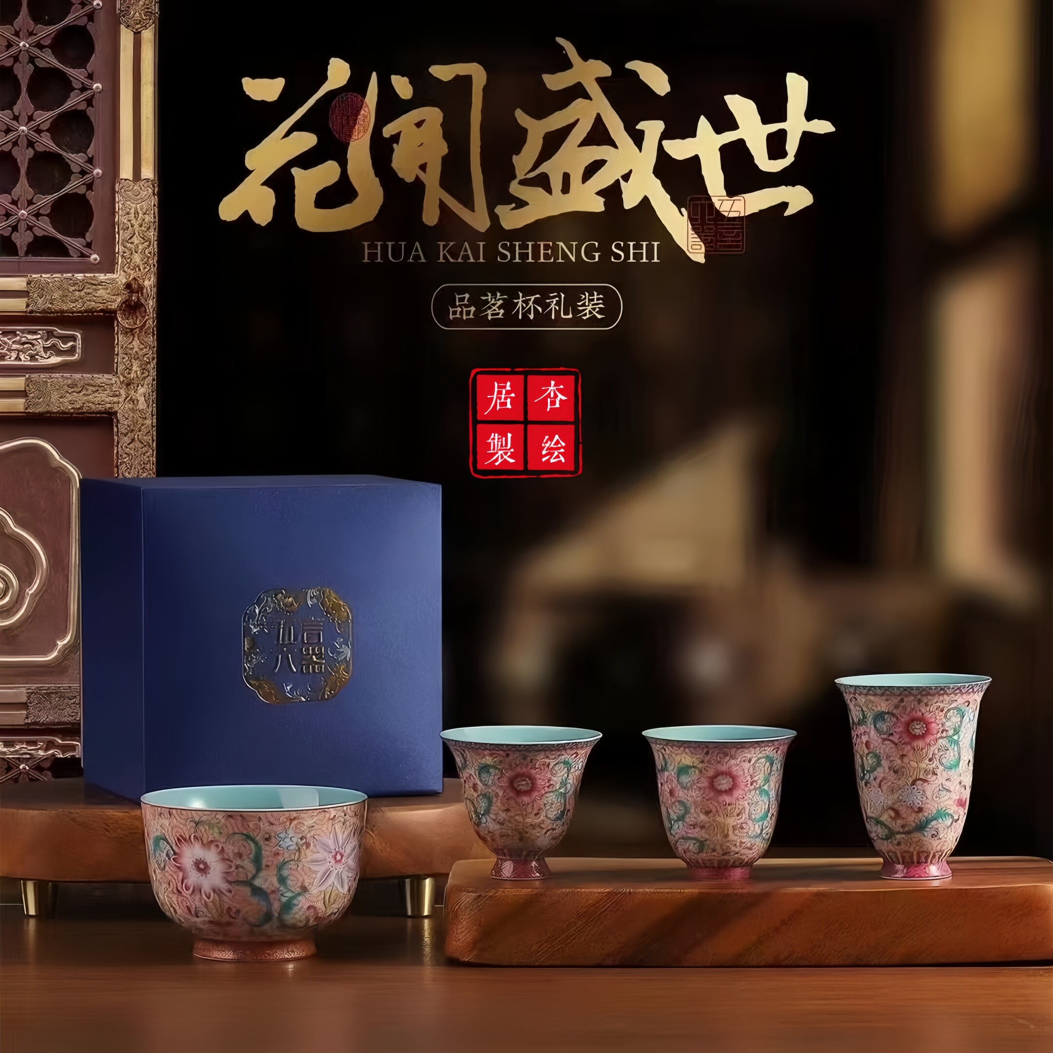📚 景德镇五言六器花开盛世静雅客杯品茗杯小茶杯茶室自用轻奢送礼物