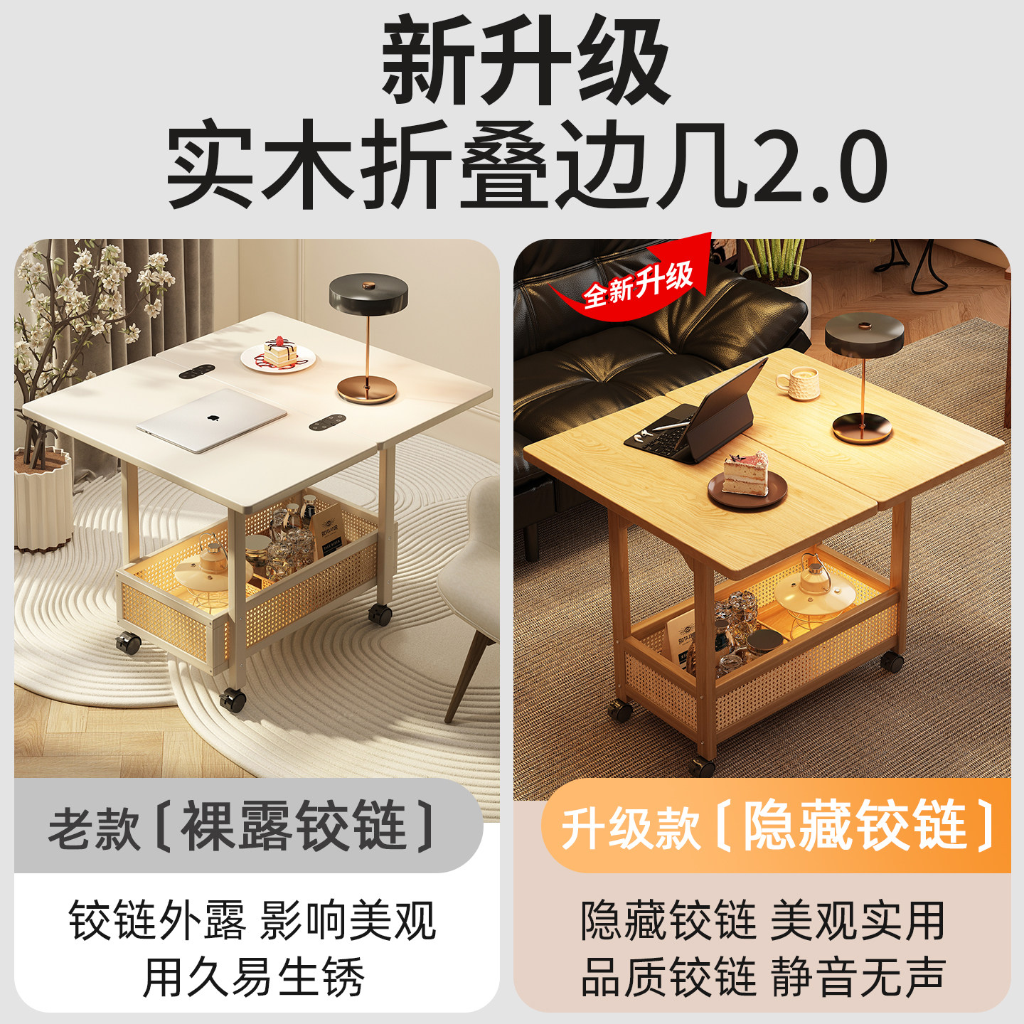 📚 实木边几可移动茶几折叠桌一体小户型家用小推车置物架沙发小桌子