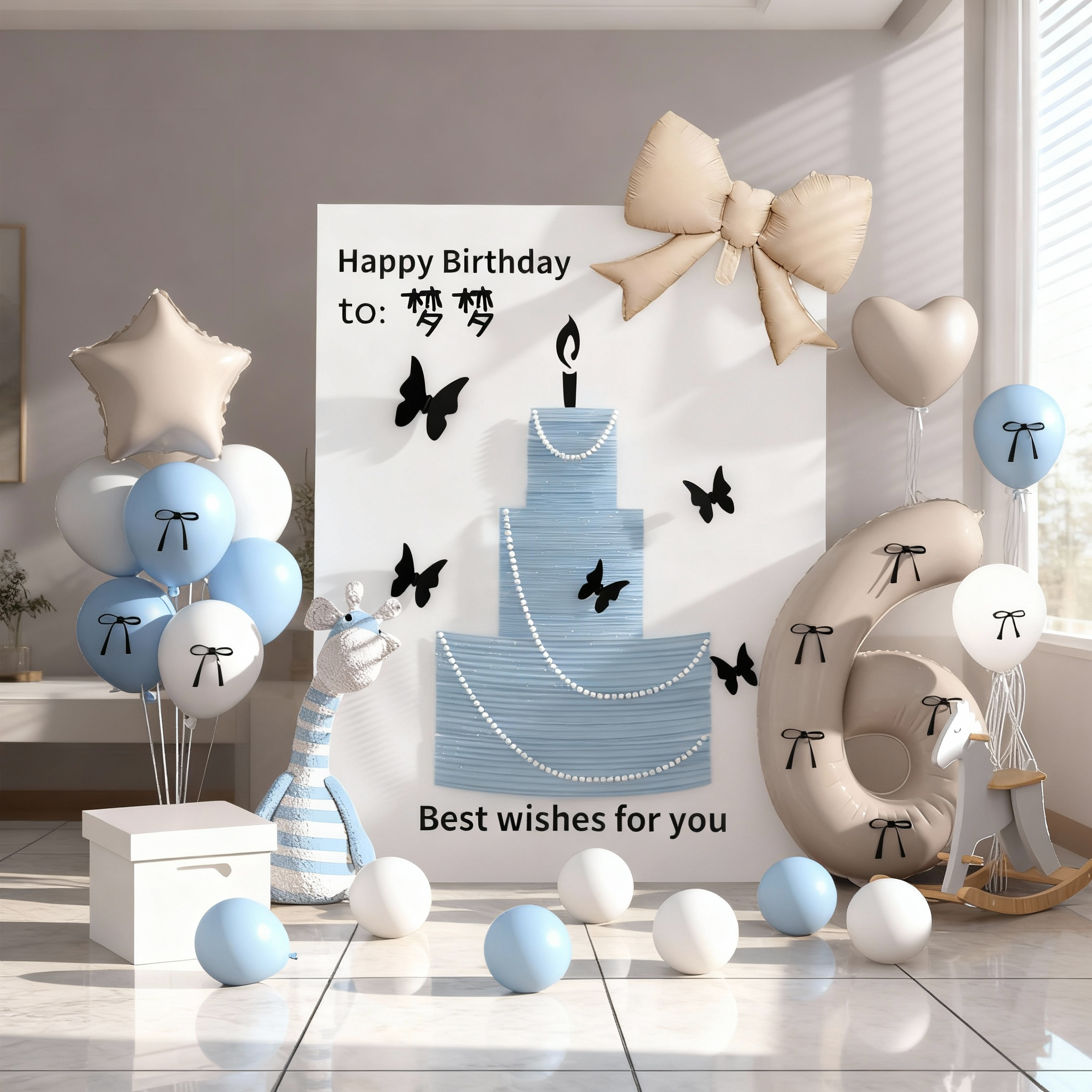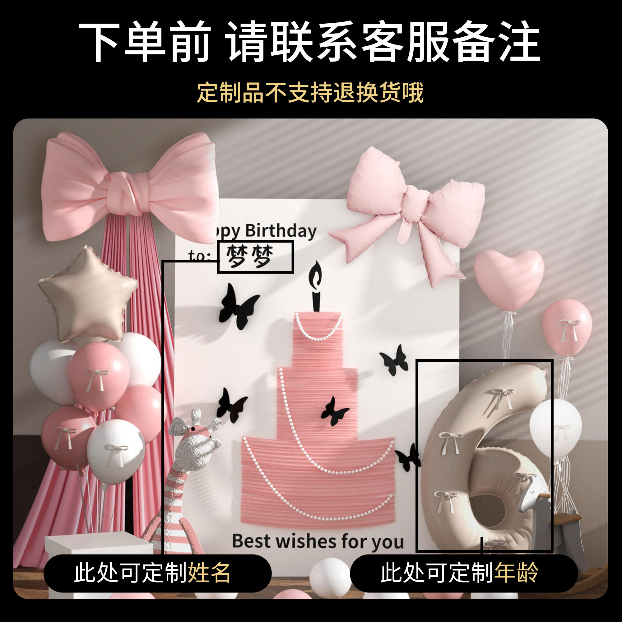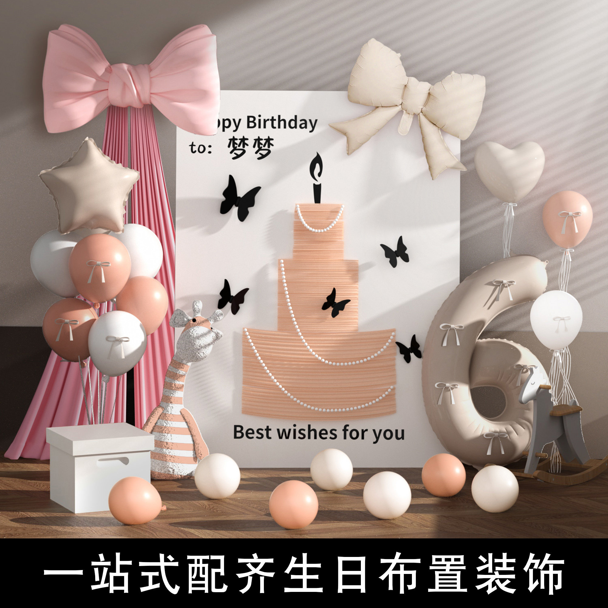 📚 生日快乐场景布置装饰气球6岁小女孩仪式感网纱蛋糕KT板定制周岁
