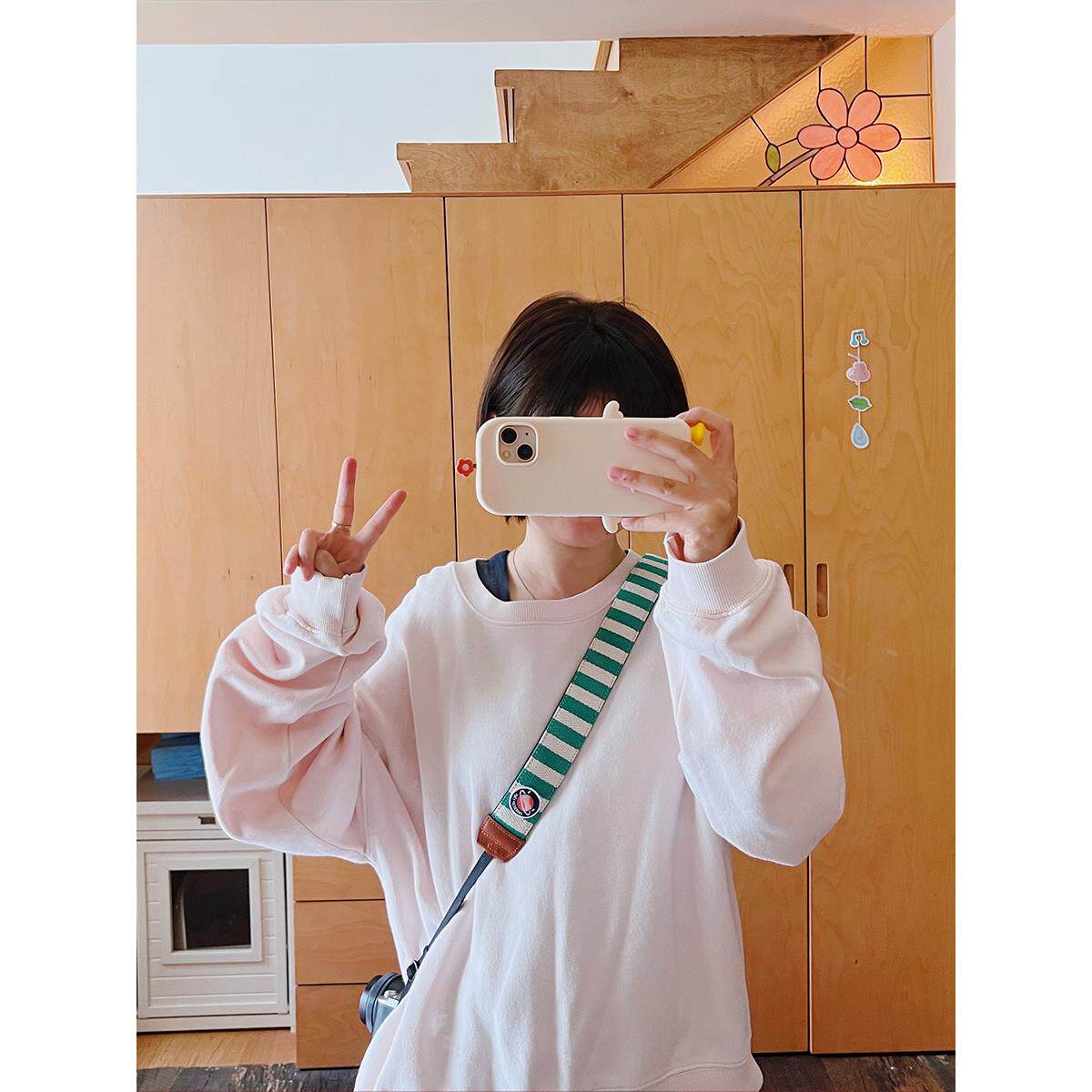 📚 自由燕燕相机背带绿色和白色条纹刺绣减压夫妇相机背带肩带单反