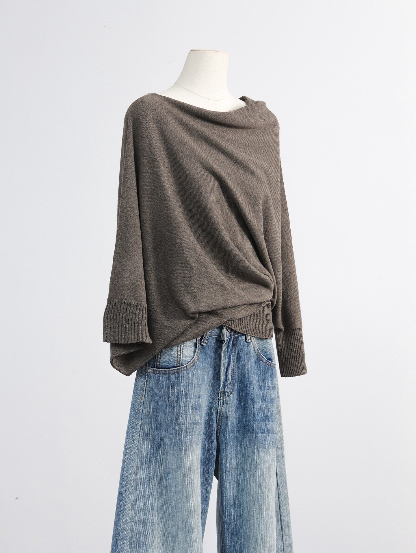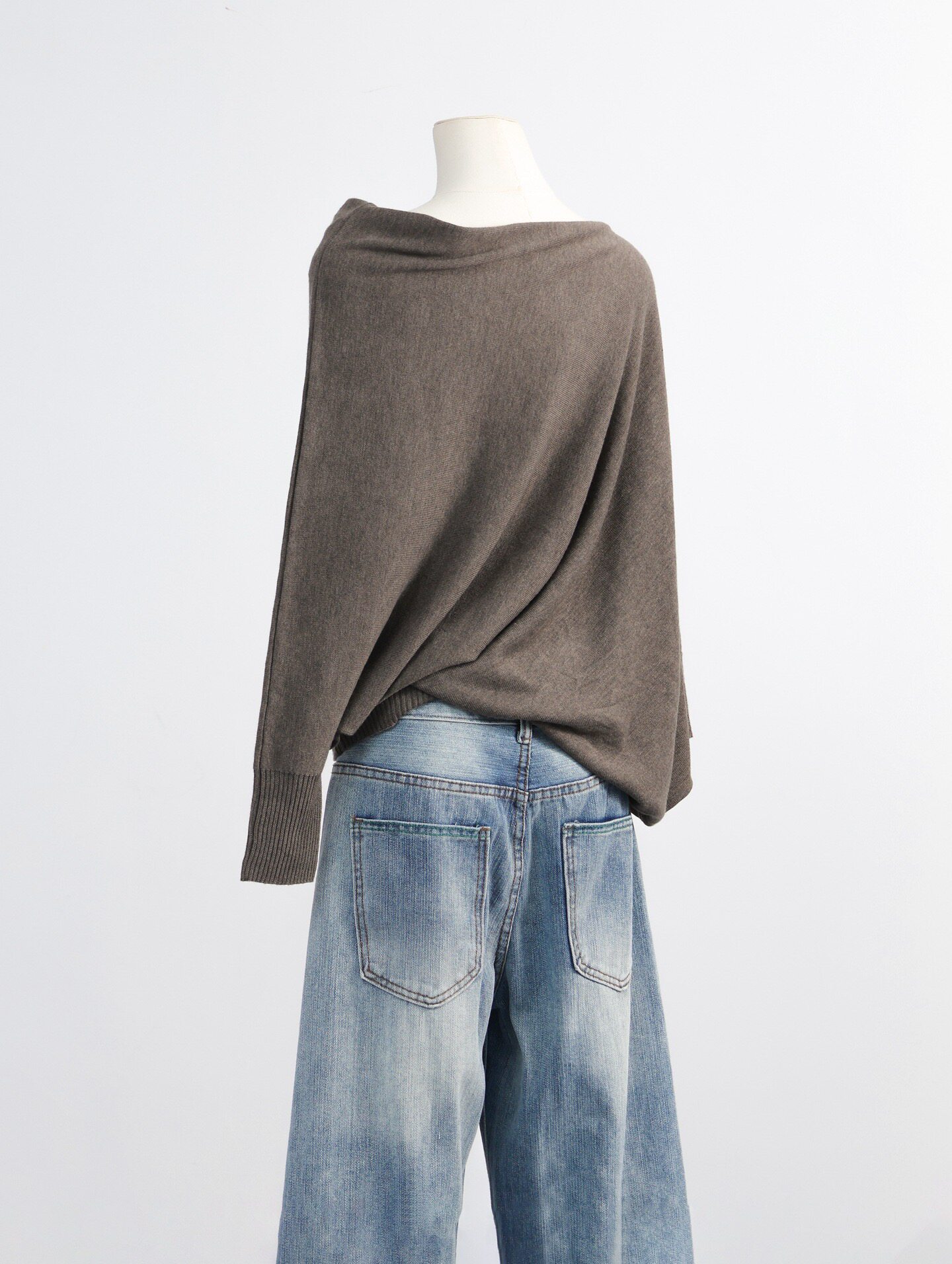 📚 EAR 慵懒堆叠 100羊毛小众设计感不规则中袖套头针织毛衣