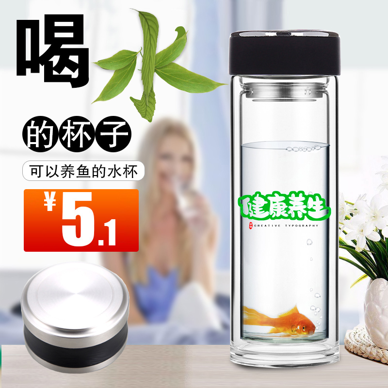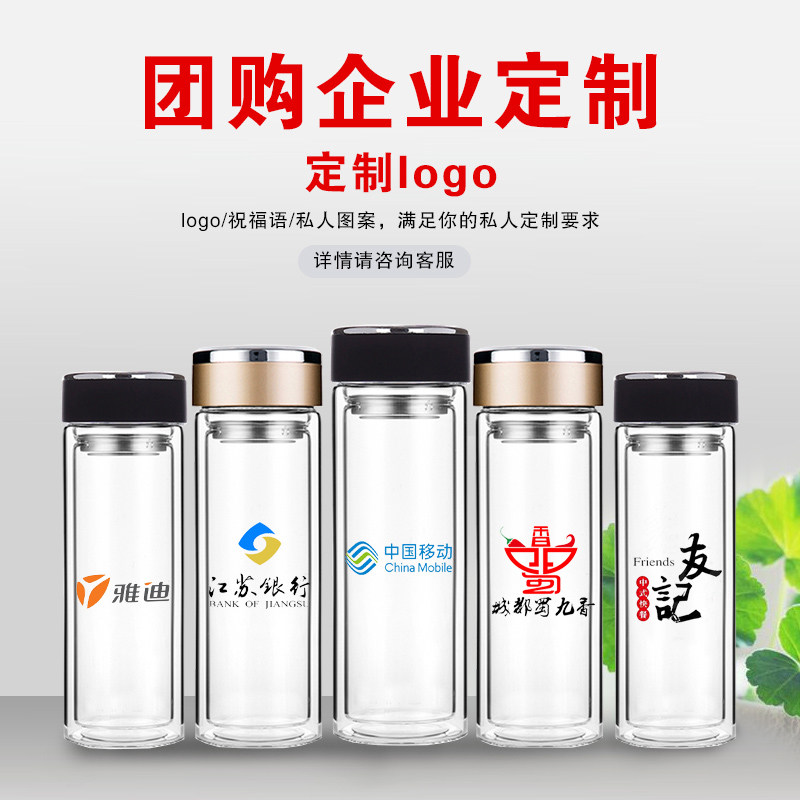 📚 双层玻璃杯泡茶杯水晶饮水杯男喝水杯子便携隔热随手杯定制广告杯