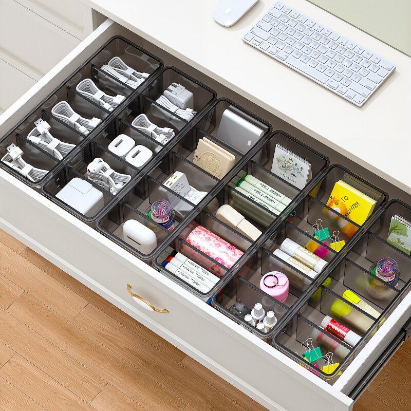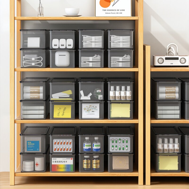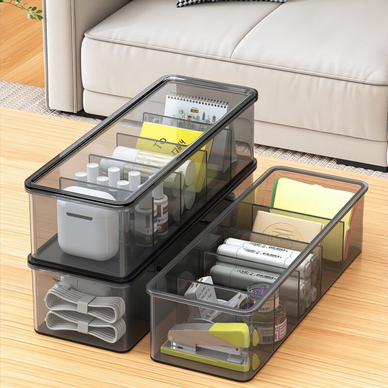 📚 佳帮手分格带盖收纳盒桌面小物件整理盒长方形塑料家用分隔储物盒