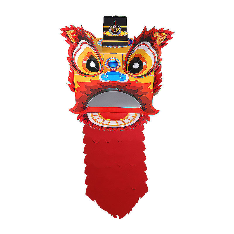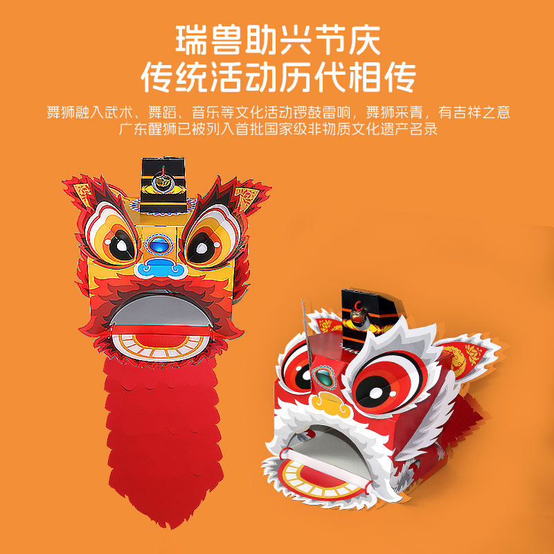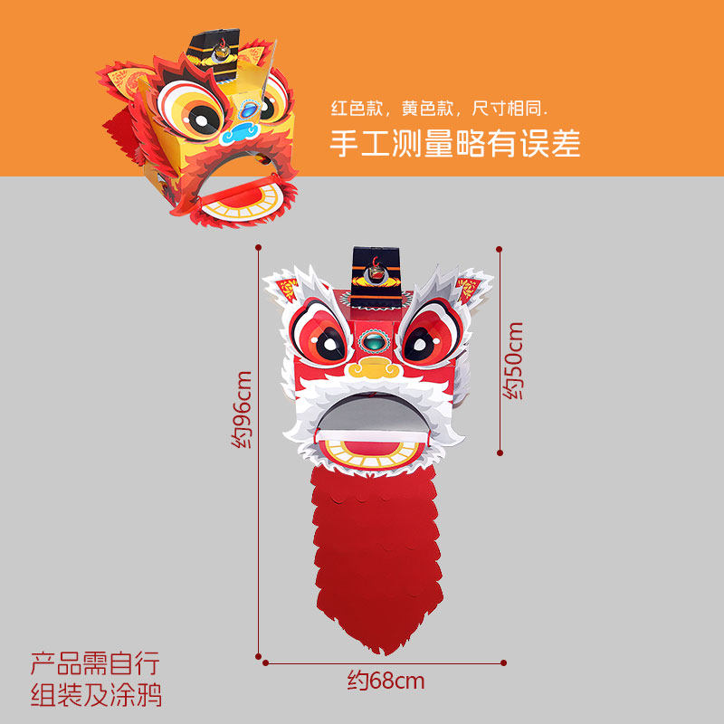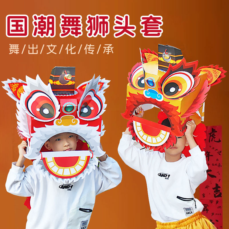 📚 2025新款国潮儿童舞狮纸壳手工diy狮头头套舞狮头端午节活动