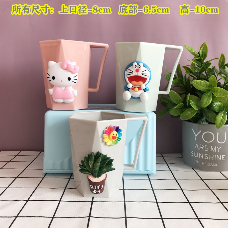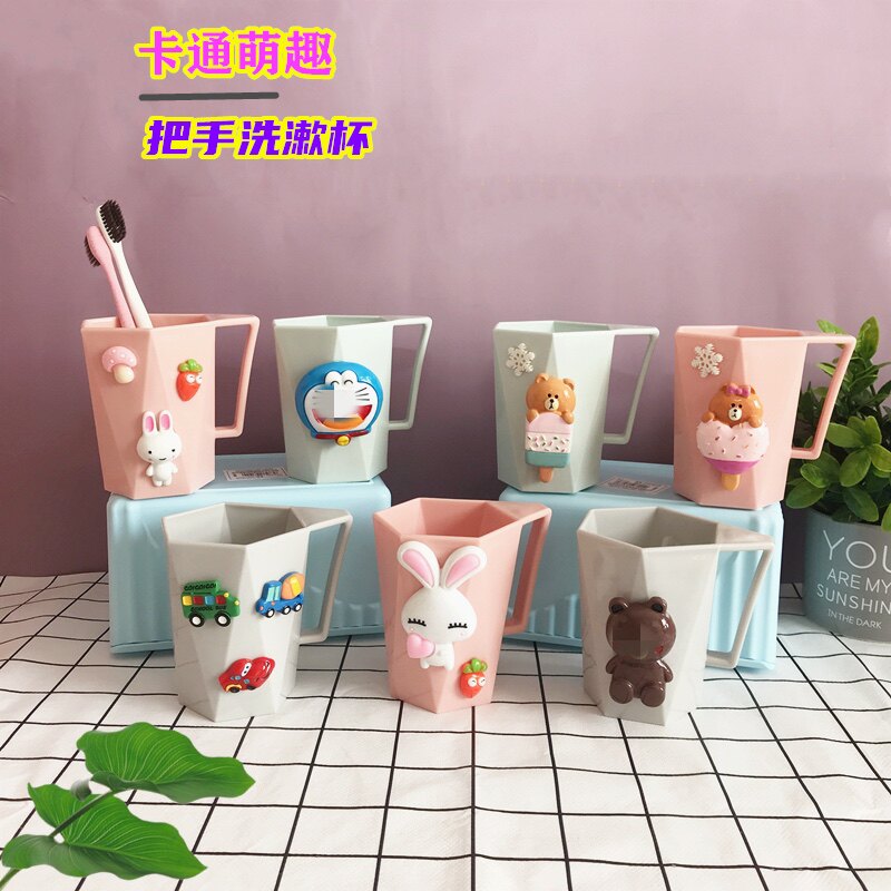 📚 卡通漱口杯可爱牙刷杯带把手洗漱杯子创意少女心情侣儿童学生牙缸