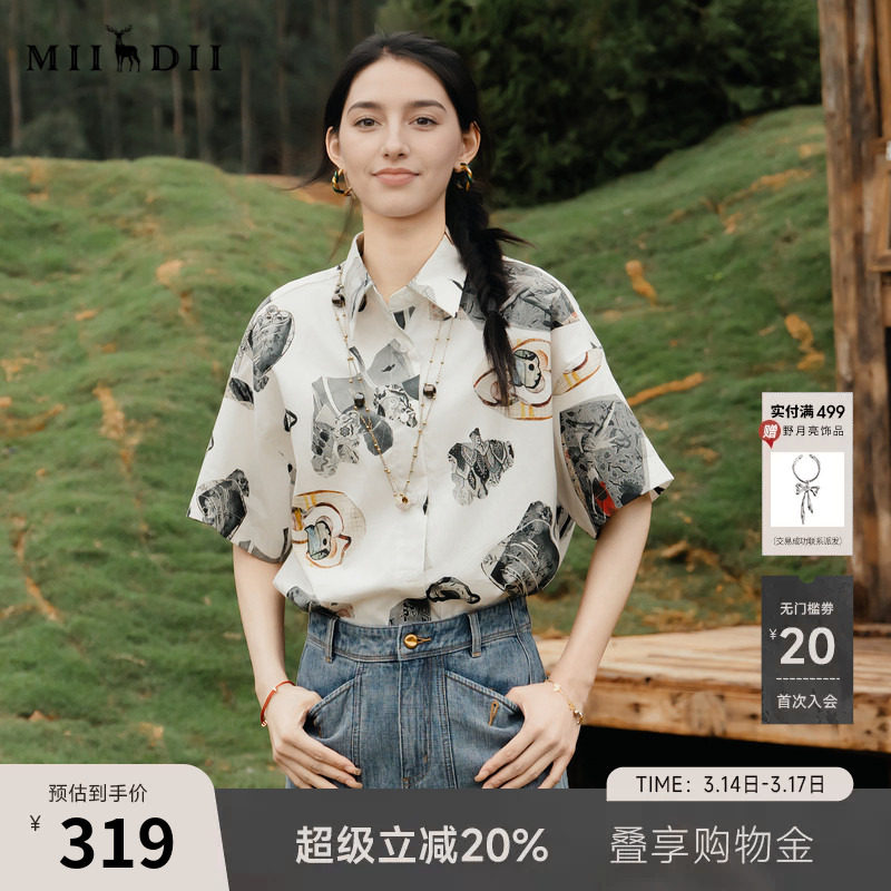 99¥ HU926 Cj8zUCE0fLM¥ https://m.tb.cn/h.ifT6Db5 谜底花色衬衫短袖女2025夏新款复古老钱风原创印花衬衣256MC6701 --------------------- 【原售价】528元 【现售价】400元。