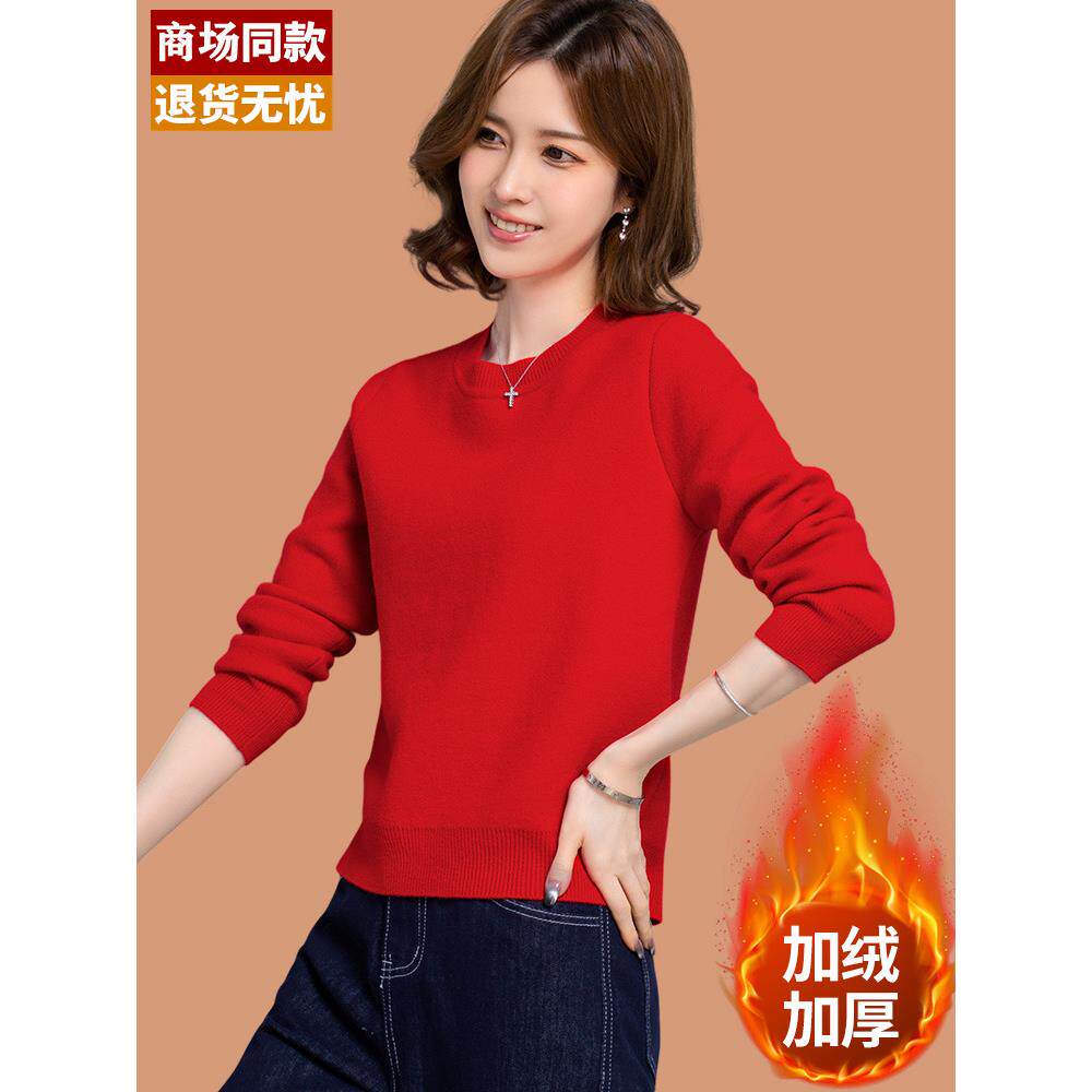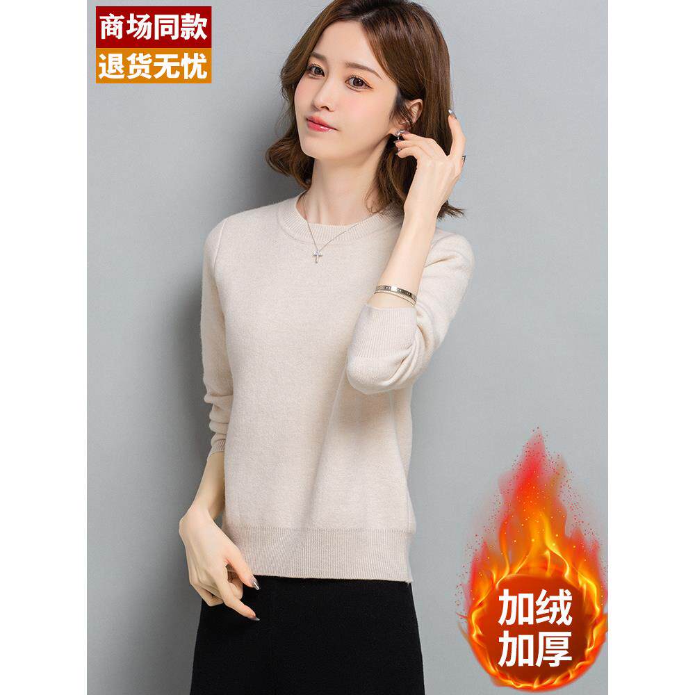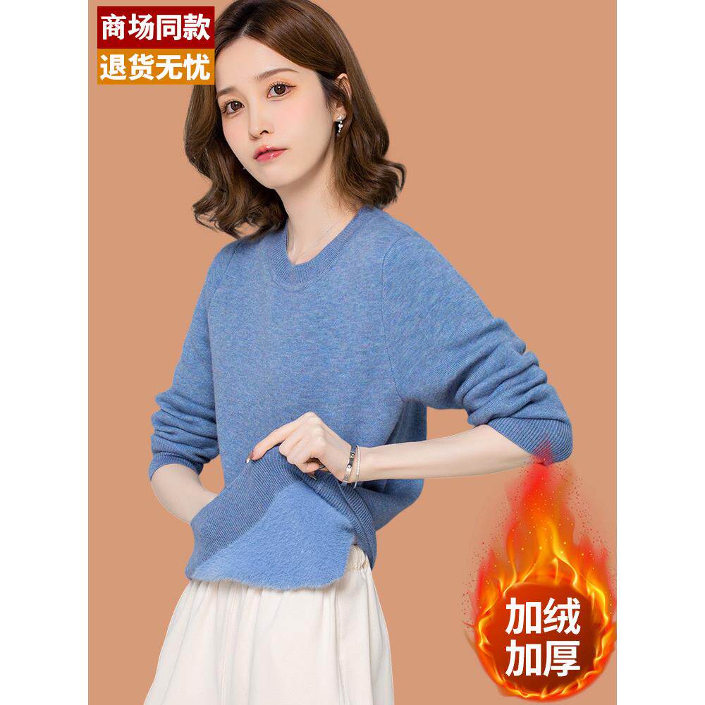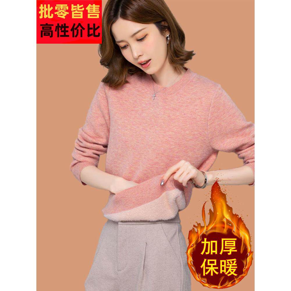 📚 小个子加绒毛衣女加厚冬季一体绒短款套头保暖低领打底内搭羊毛衫