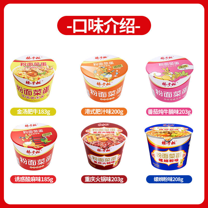 📚 杨掌柜粉面菜蛋桶装金汤肥牛方便面酸辣粉丝泡面速食食品批发