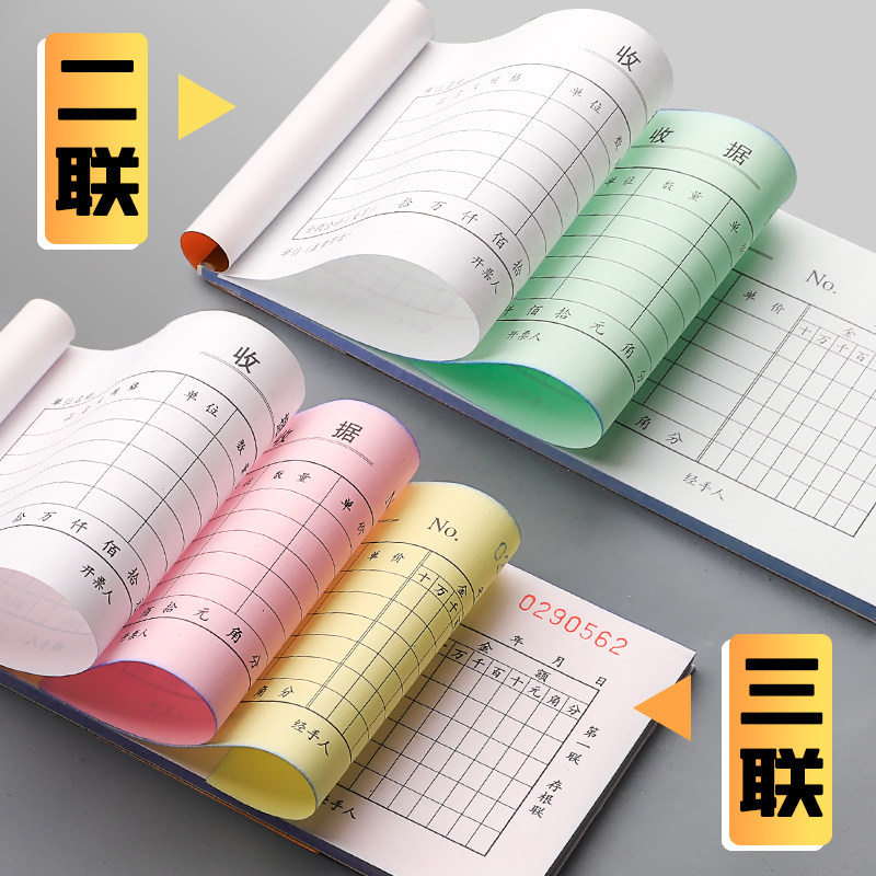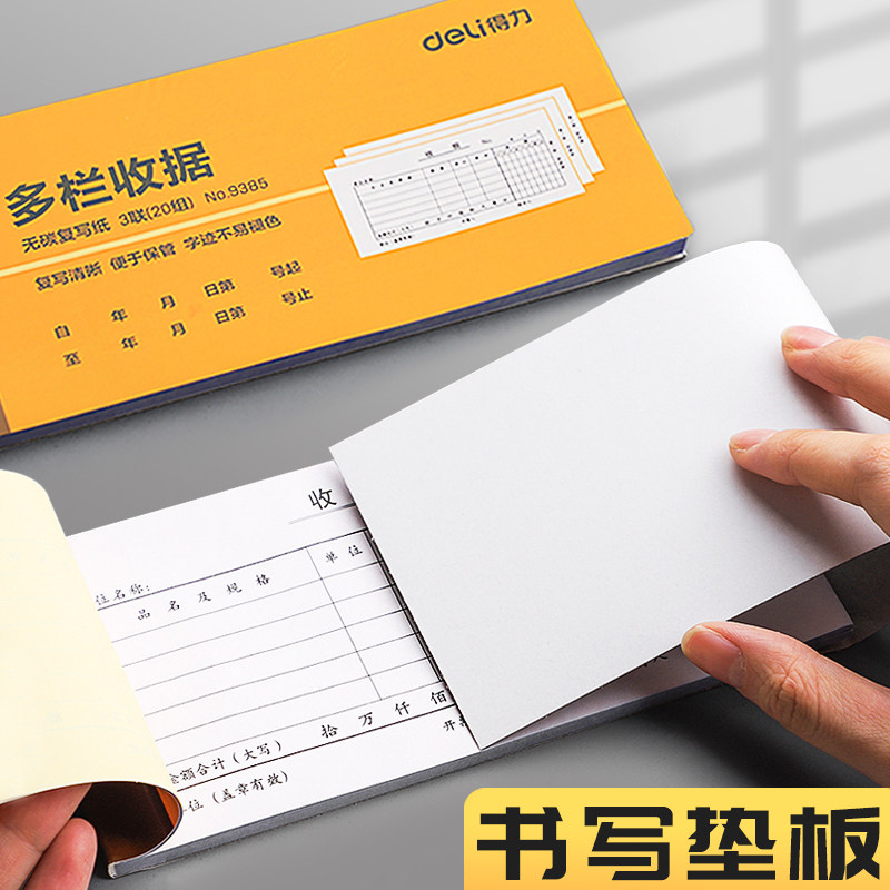 📚 得力无碳二联三联收据本财务单栏收据单多栏单据票据收款凭证现金复写纸2联3联两联开单子纸二连三连手写记账