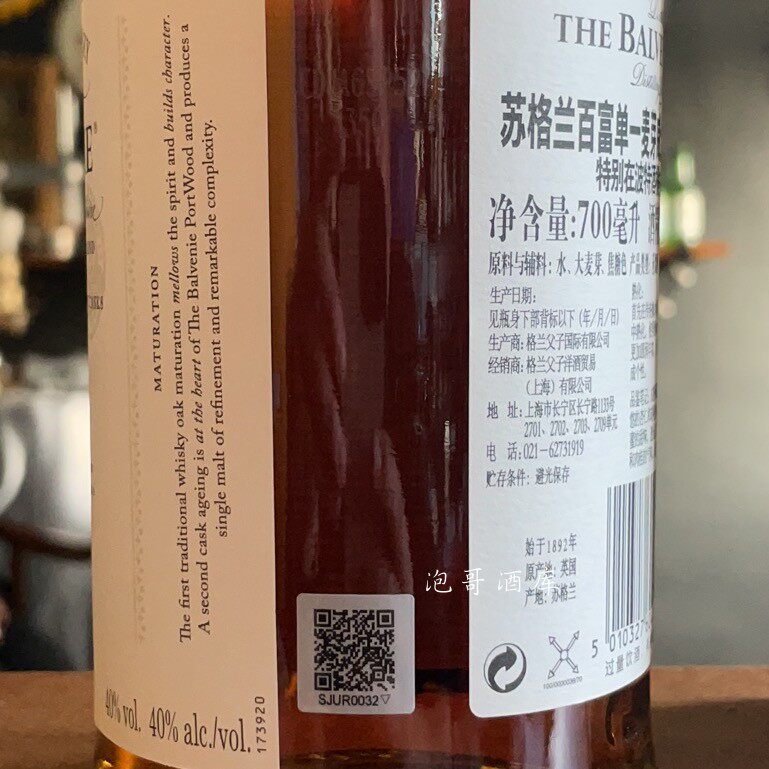 📚 百富21年单一纯麦苏格兰威士忌 Balvenie PORTWOOD 波特桶 洋酒