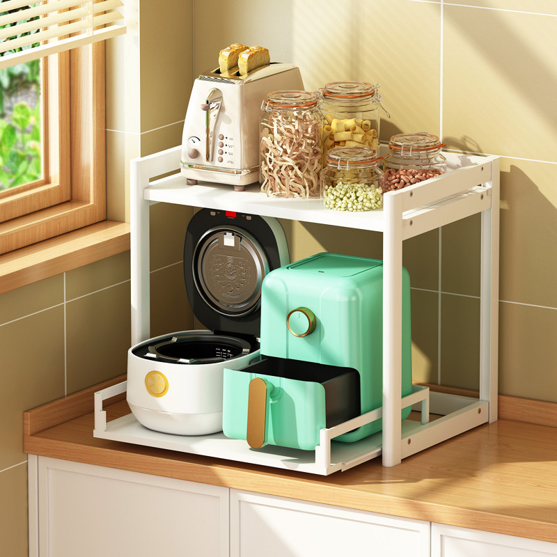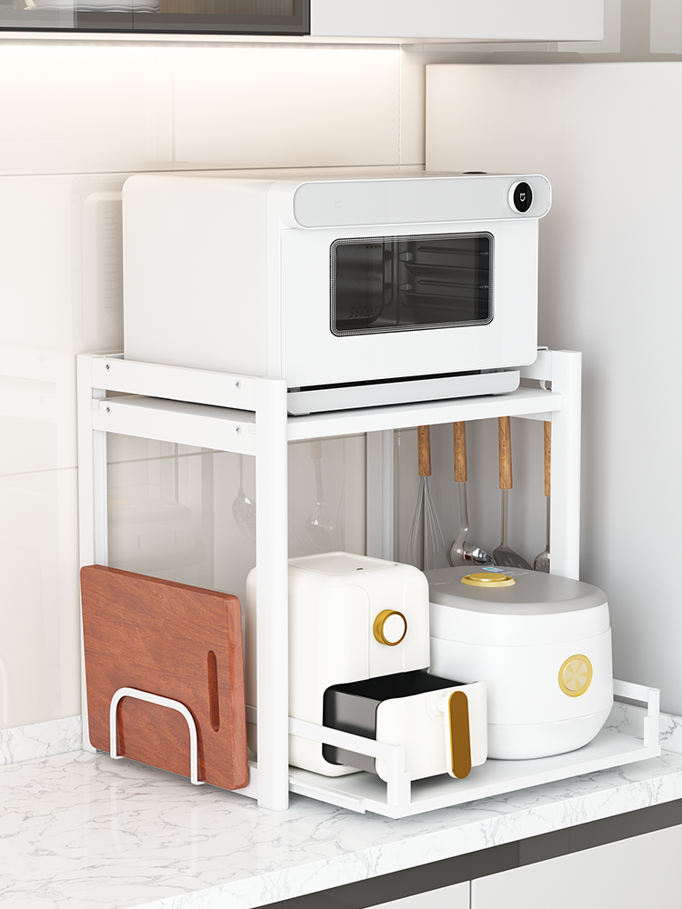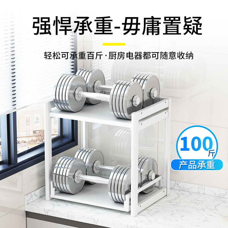 📚 太空铝厨房电饭煲置物架台面双层可放电饭锅收纳放空气炸锅的架子