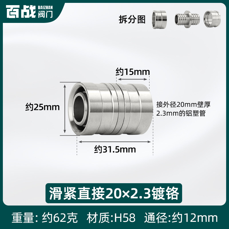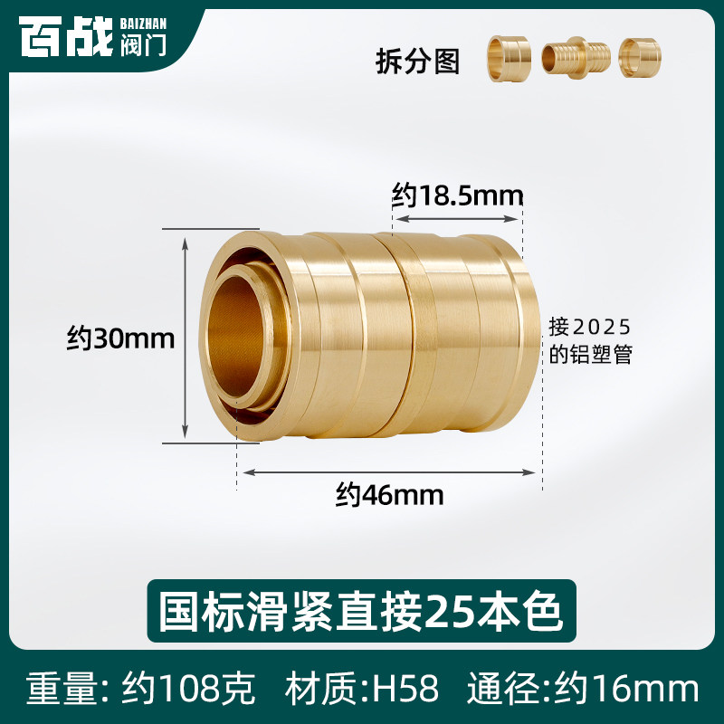 📚 地暖管专用接头配件1216铝塑管1620滑紧件地热水管等径直接滑紧式