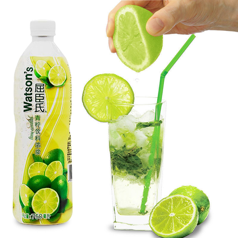 📚 屈臣氏青柠饮料浓浆750m*12瓶/箱青柠汁青柠水柠檬汁调酒奶茶冲饮