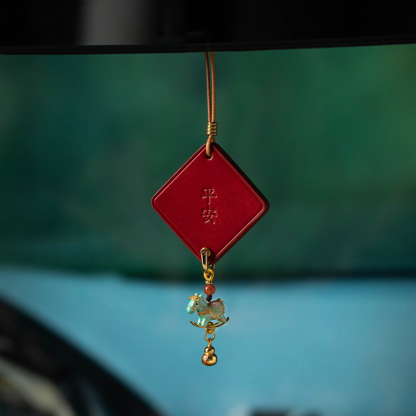 📚 平安牛皮车载挂饰铜镀金景泰蓝小马汽车挂件2026新款马上暴富吊坠