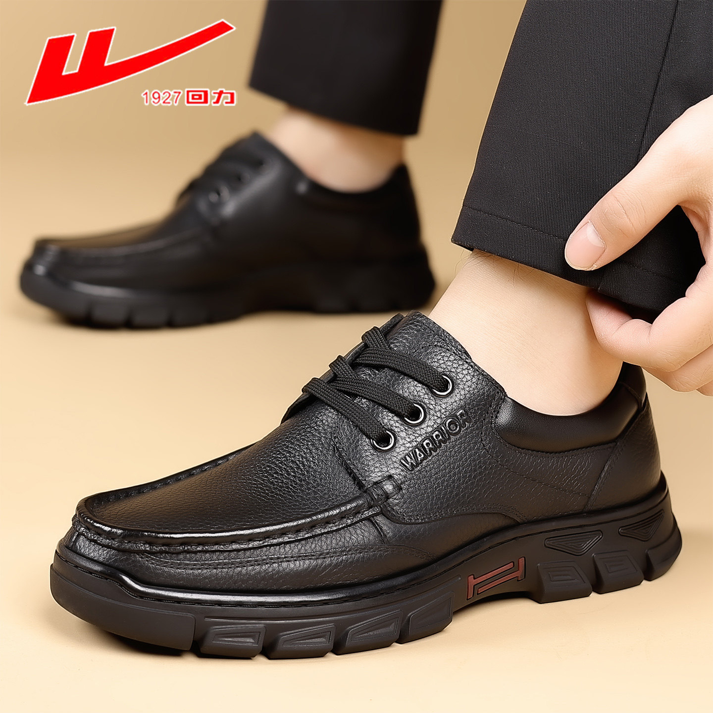 📚 回力皮鞋男款冬季真皮男士厚底耐磨休闲皮鞋加绒防滑软底爸爸鞋子