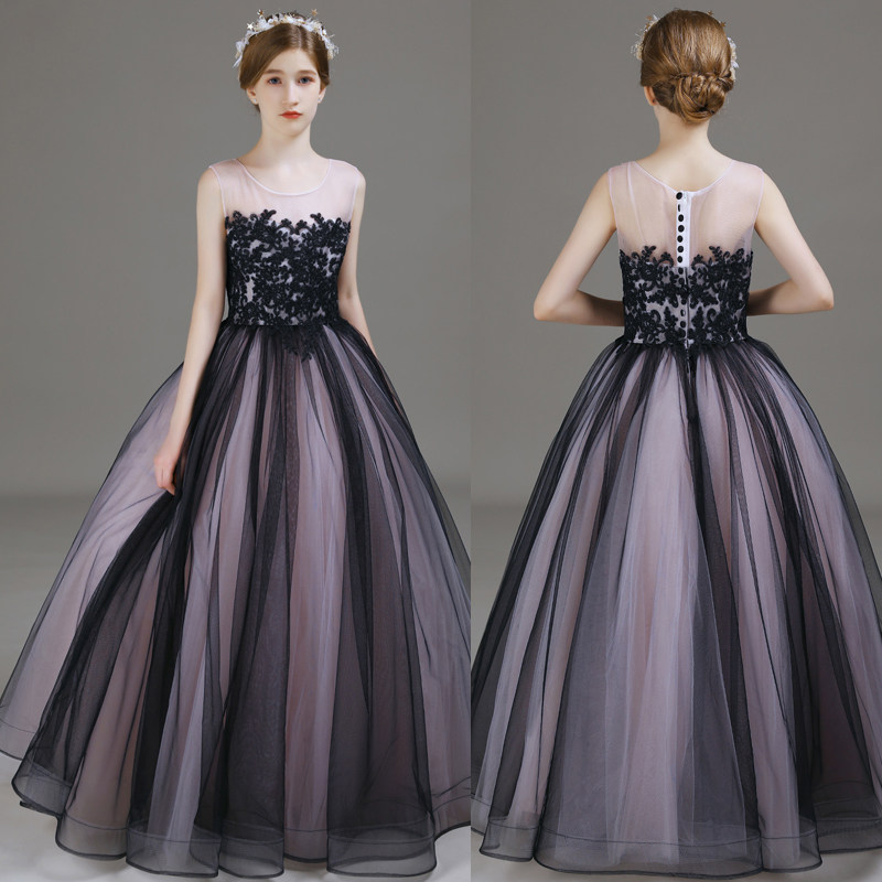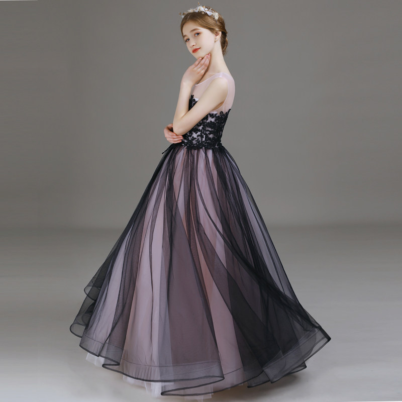 📚 女童高端主持人钢琴表演出服装儿童管弦乐声乐考级礼服公主裙长款