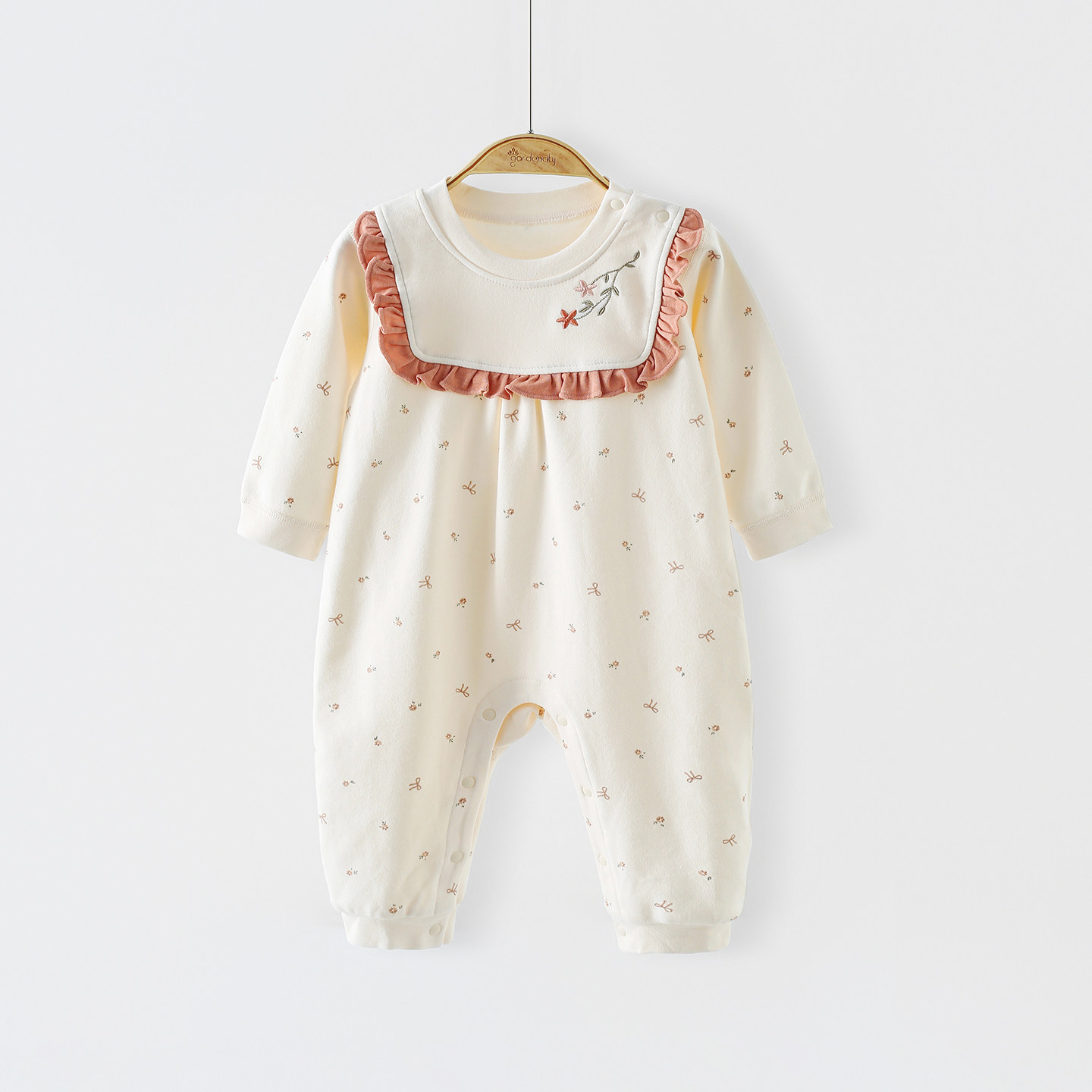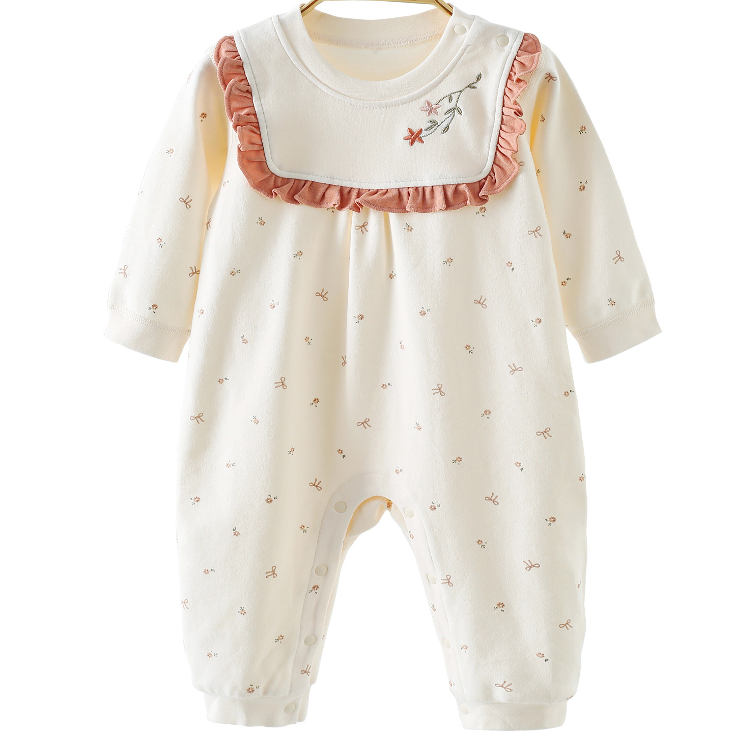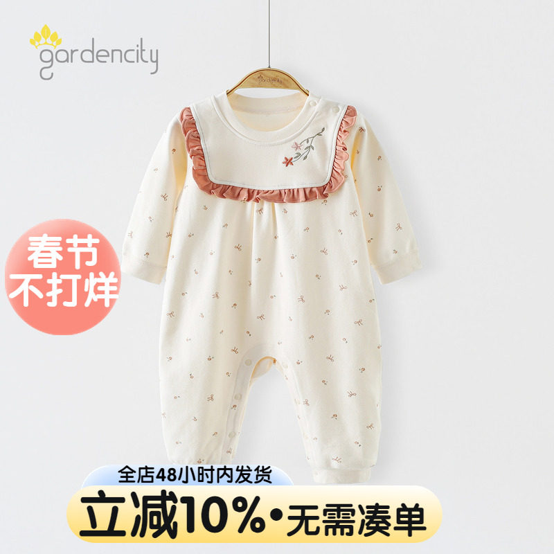 📚 婴儿连体衣秋冬舒绒棉保暖260g女宝宝甜美花边拼接长袖哈衣家居服