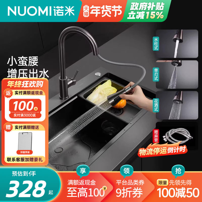 📚 NUOMI/诺米抽拉龙头厨房水槽304不锈钢冷热多功能万向旋转水龙头