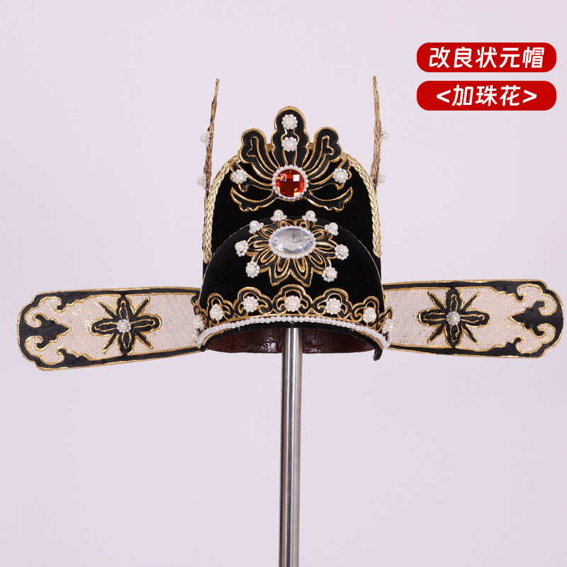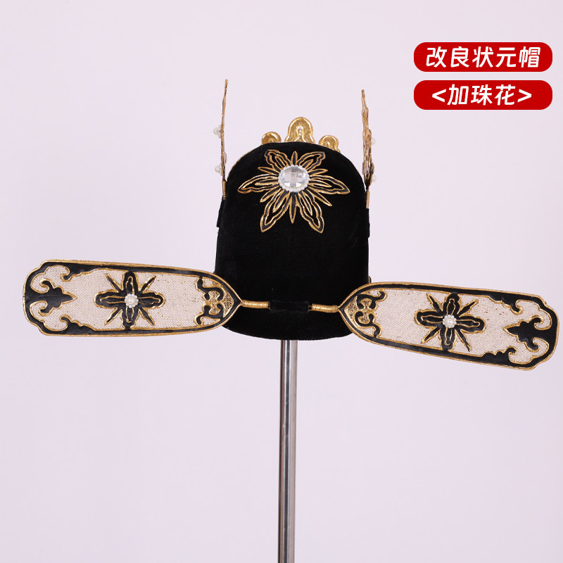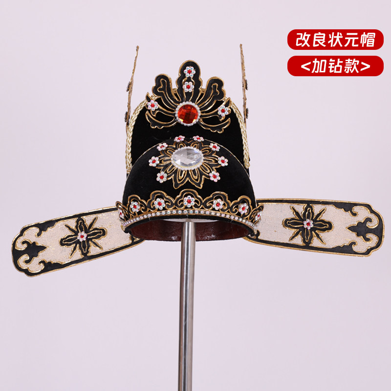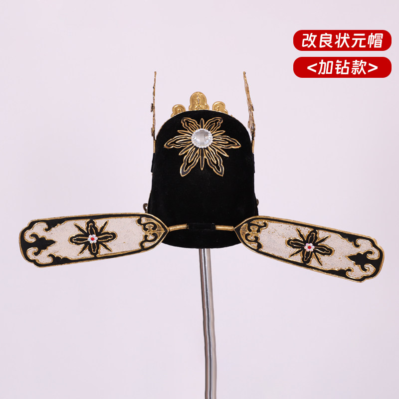 📚 戏曲京剧戏剧小生帽子改良状元帽改良小生巾官帽新郎帽点钻状元纱