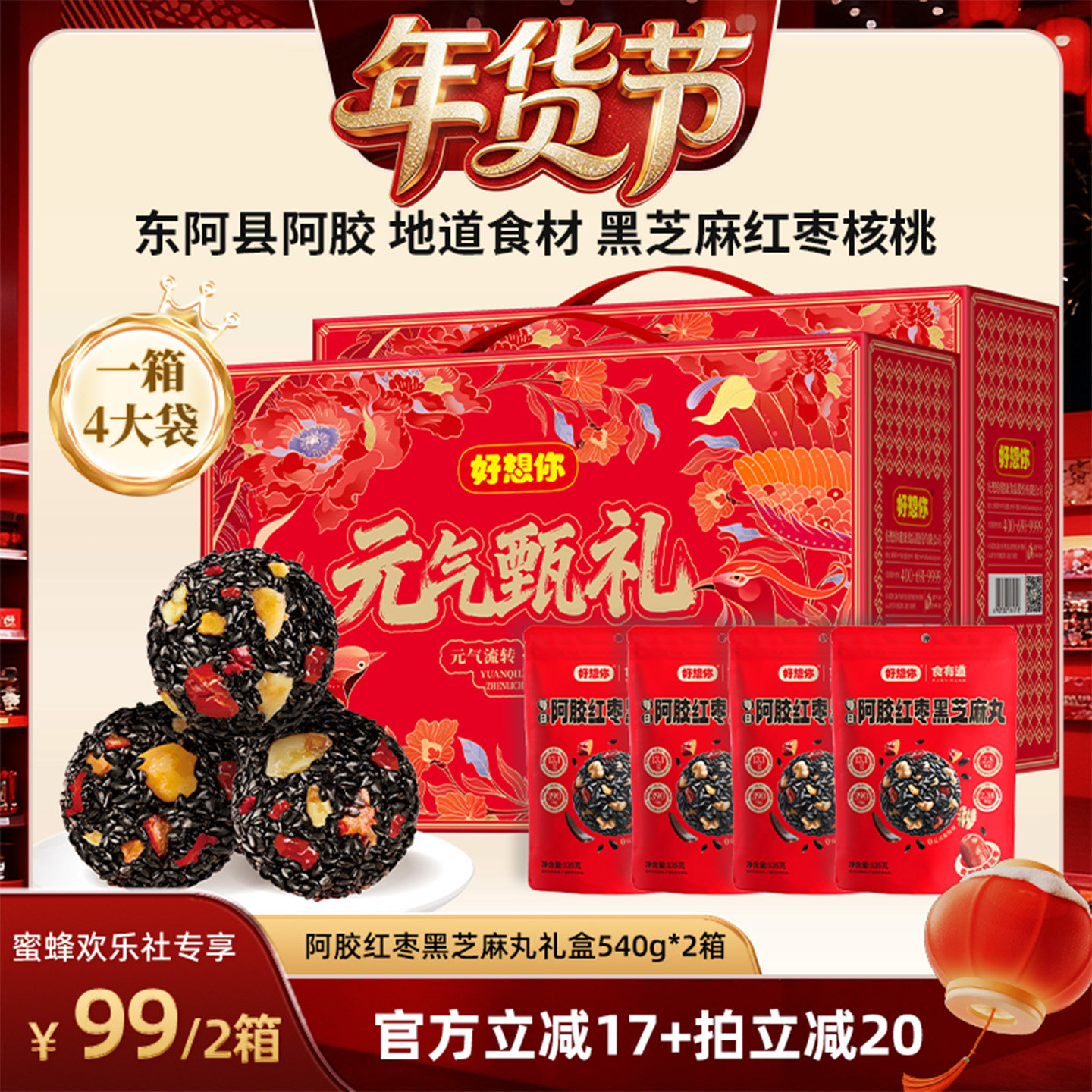 📚 【爆品年货节】好想你阿胶红枣黑芝麻丸礼盒540g*2箱年货大礼包