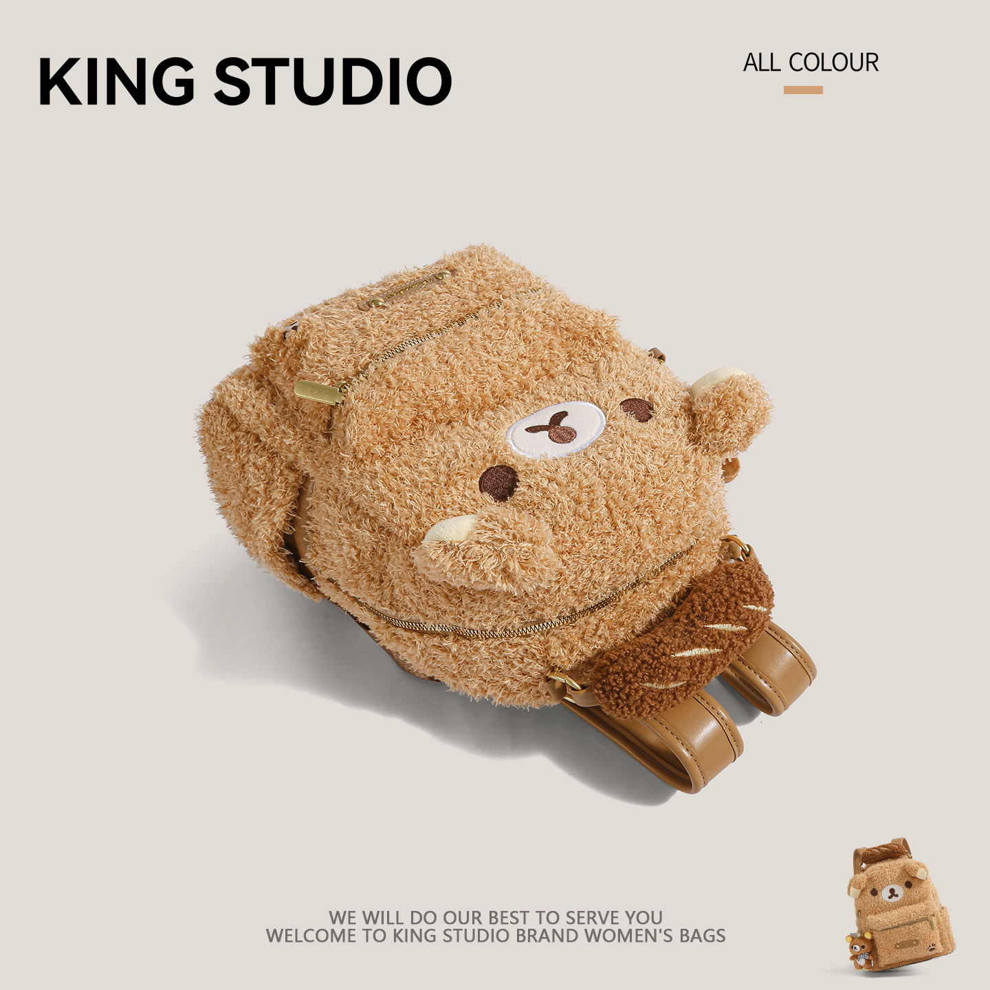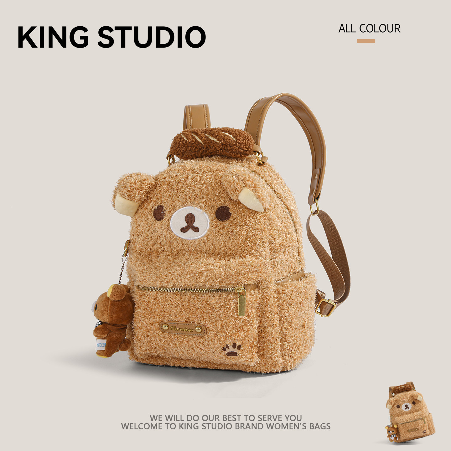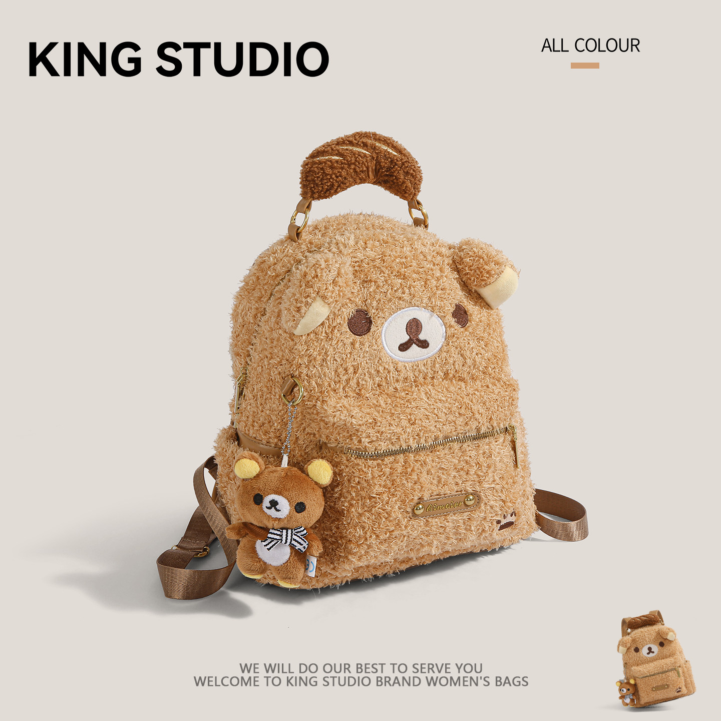 📚 可爱卡通毛绒双肩包女2026春夏新款学院风百搭大容量日常通勤背包