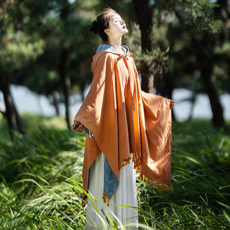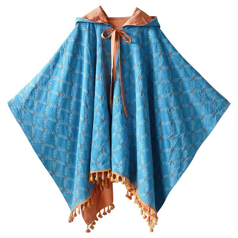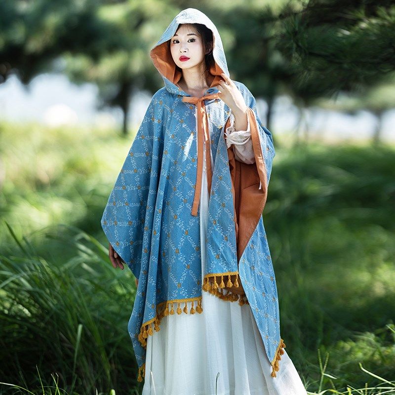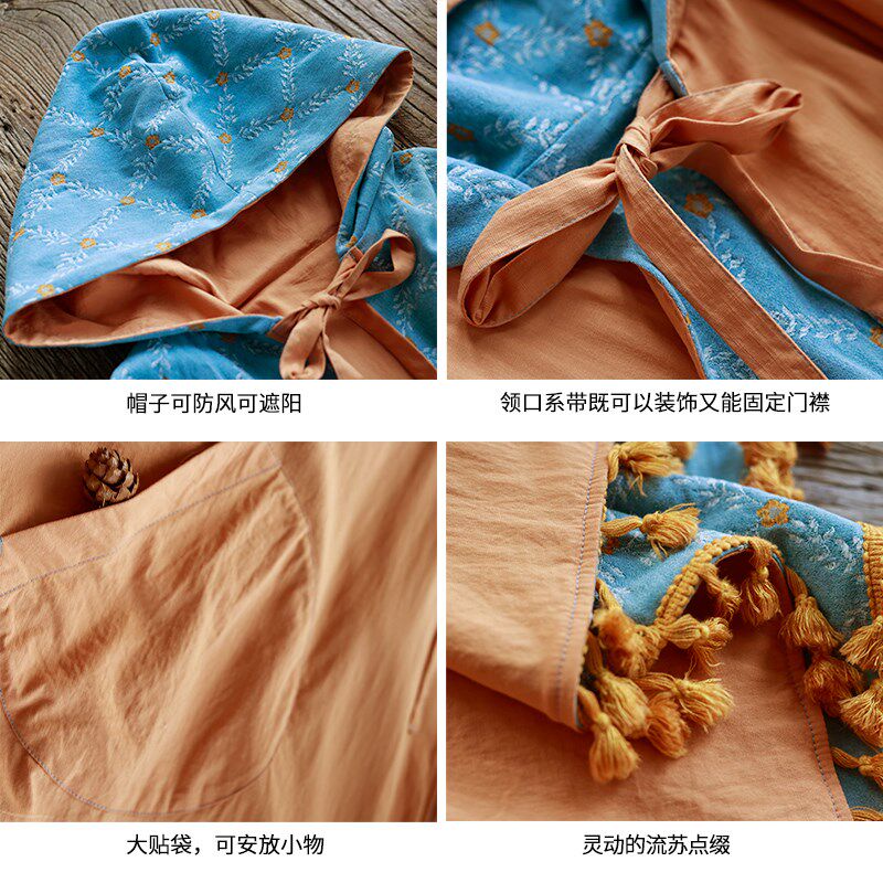 📚 【秋意风浓】流苏披肩女2024秋外搭斗篷正反两穿连帽牛仔提花风衣