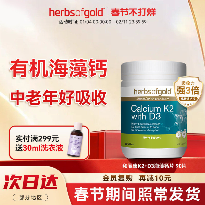 📚 herbsofgold和丽康澳洲进口海藻钙片K2D3中老年钙高吸收不反酸