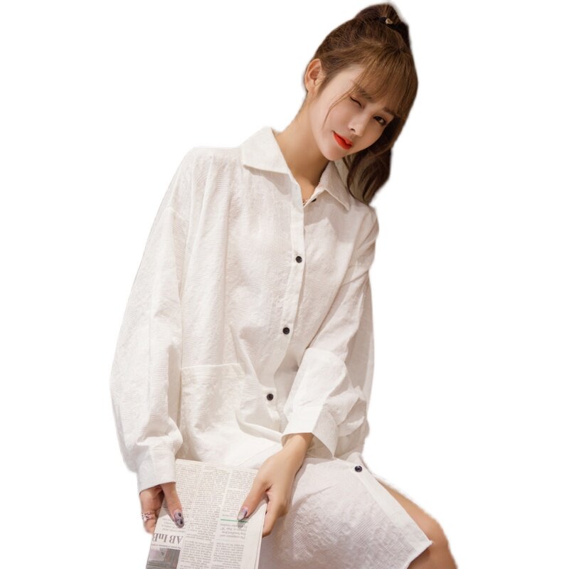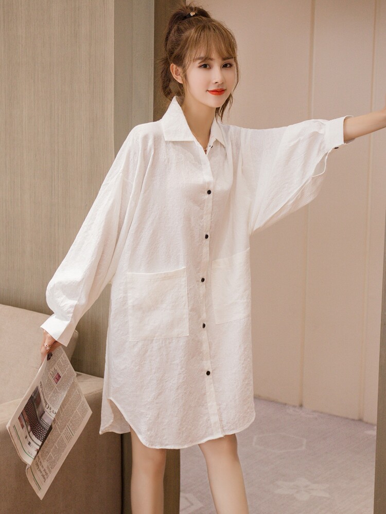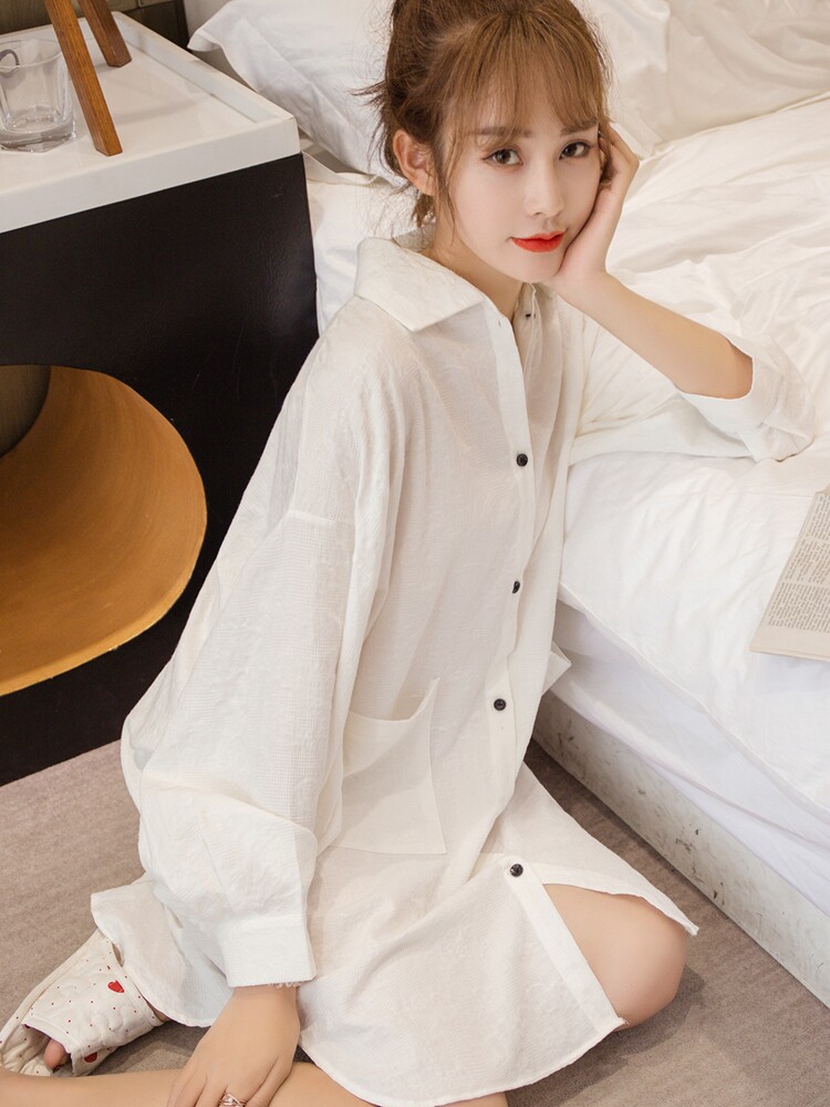 📚 日系男友风睡裙衬衫睡衣女春夏季新款bf性感中长款纯棉衬衣可外穿