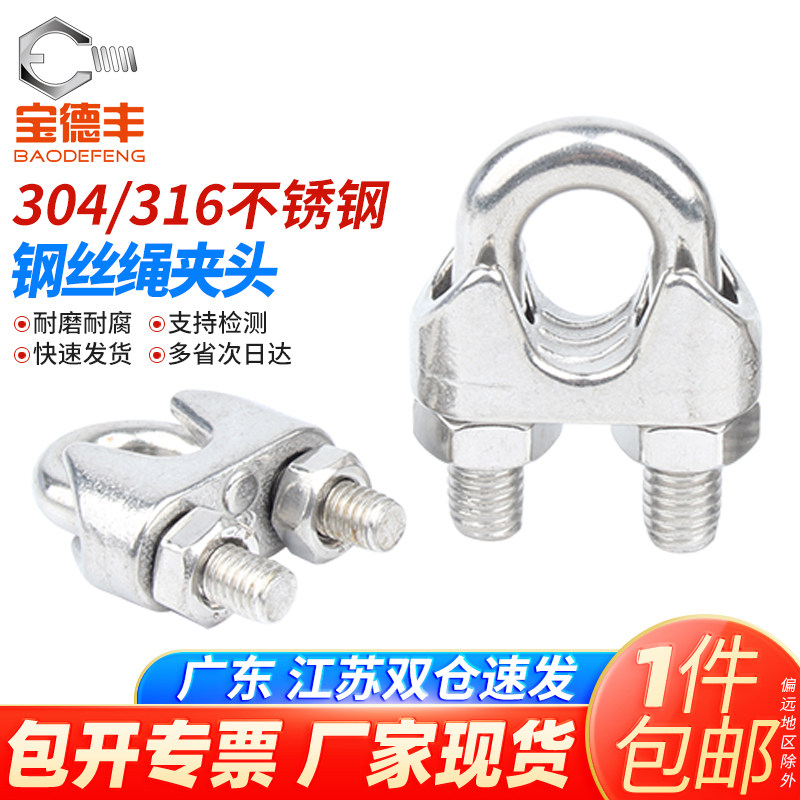 📚 304/316不锈钢钢丝绳夹头卡头轧头U型夹锁扣卡扣卡子M2M3M4-M32mm