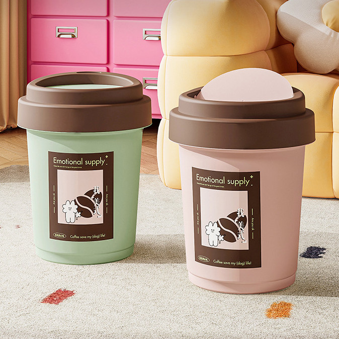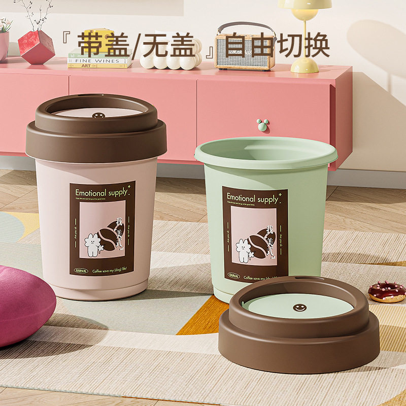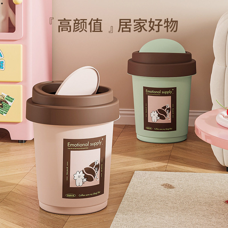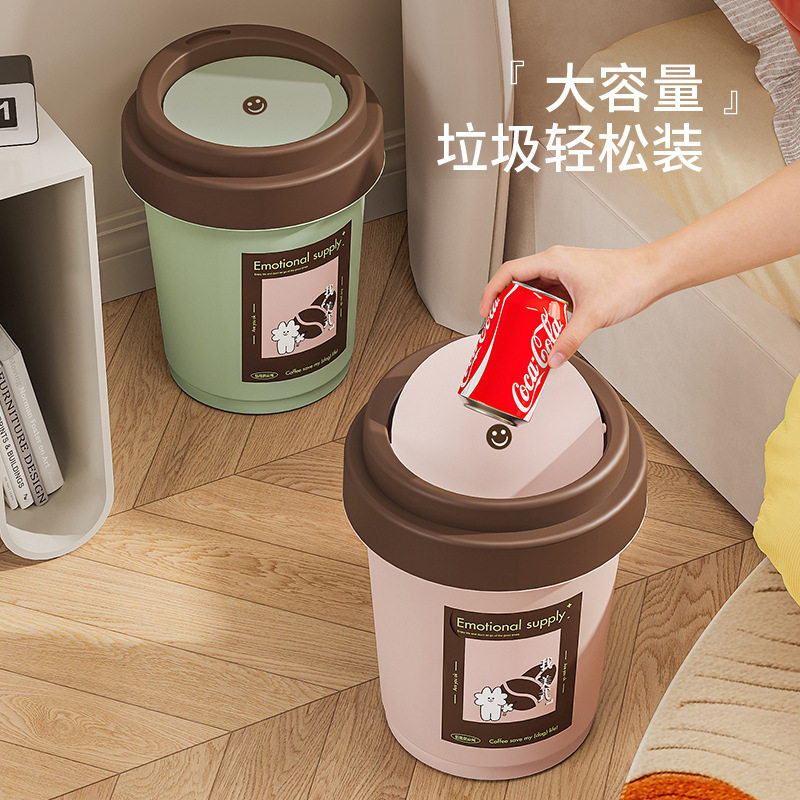 📚 可爱咖啡杯翻盖垃圾桶家用客厅卧室摇盖式垃圾筒大号圆形带盖纸篓