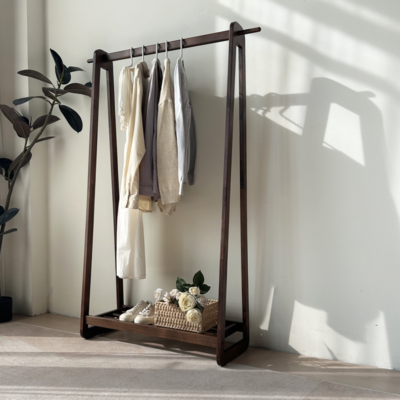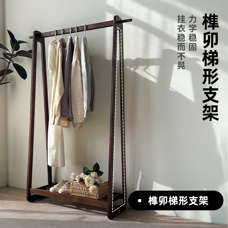 📚 北美黑胡桃实木落地挂衣架衣帽架2026新款卧室衣服置物架子次净衣