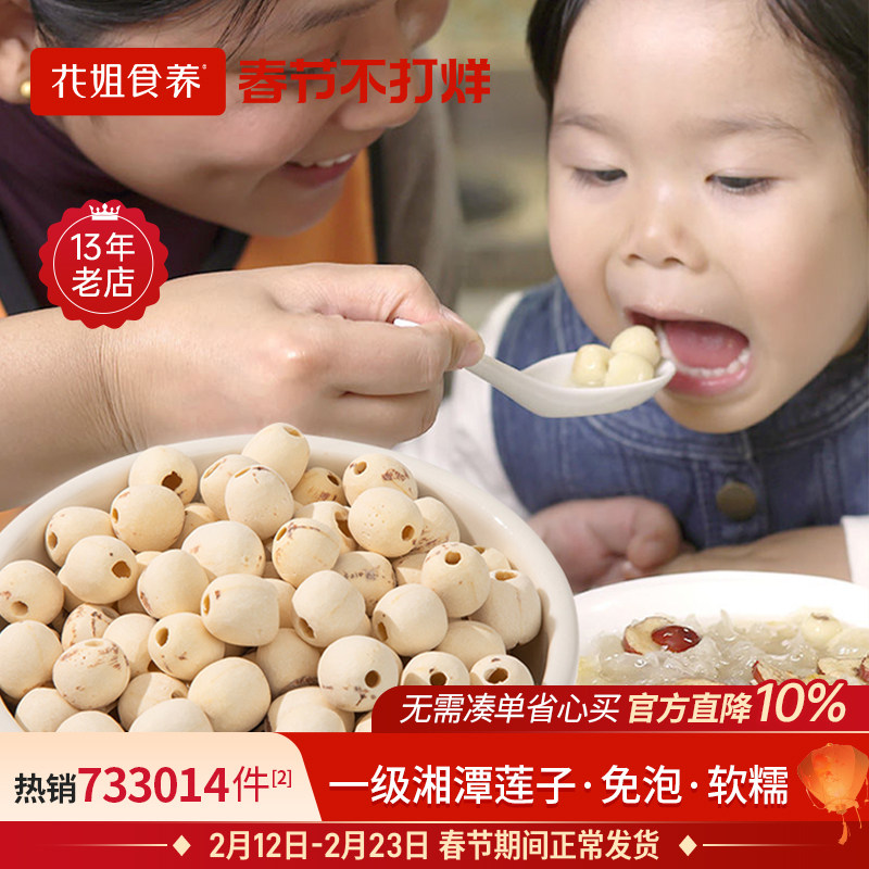 📚 花姐莲子干货220g去芯心莲子磨皮无芯白莲子通心湘莲无硫主妇干货
