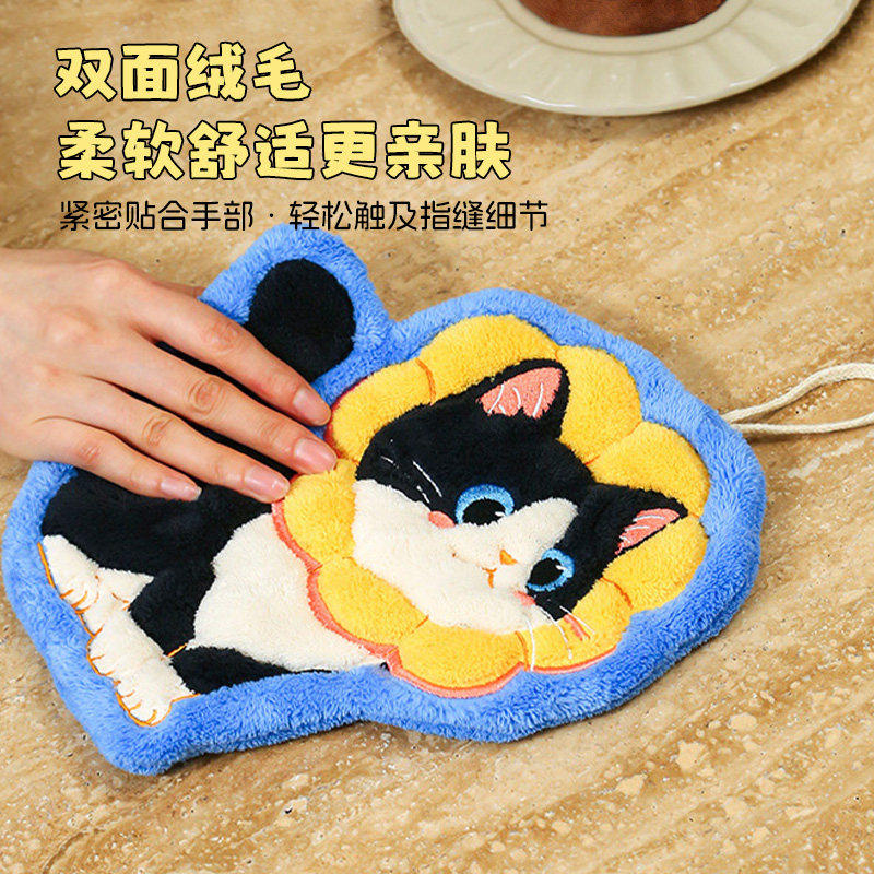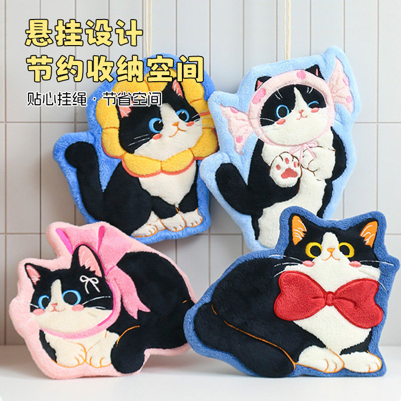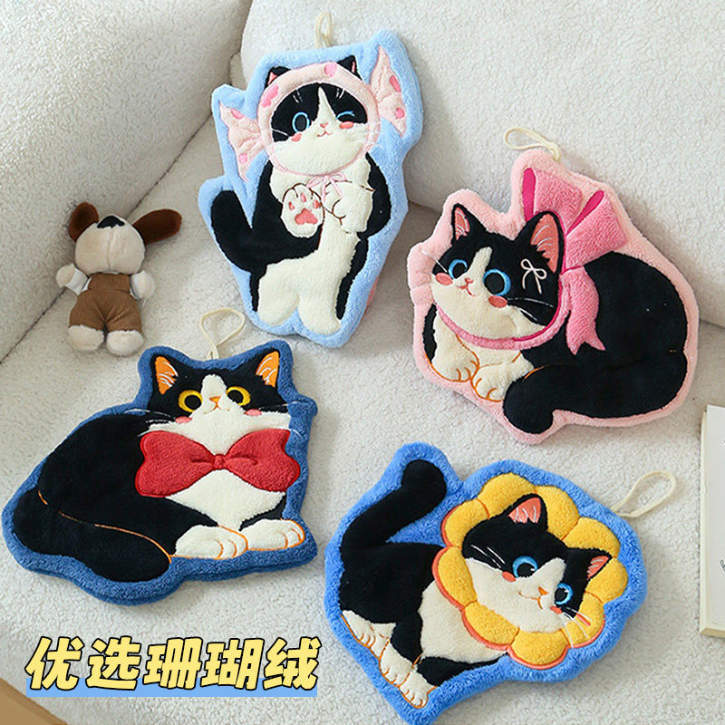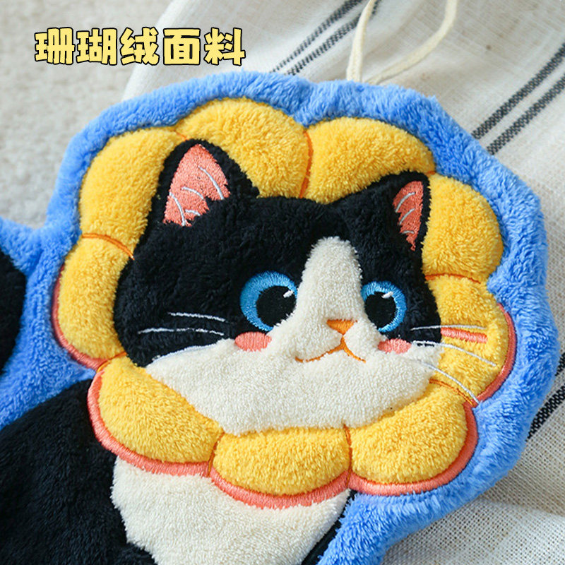 📚 可爱猫咪擦手巾挂式超强吸水加厚厨房卫生间毛巾手帕珊瑚绒小方巾