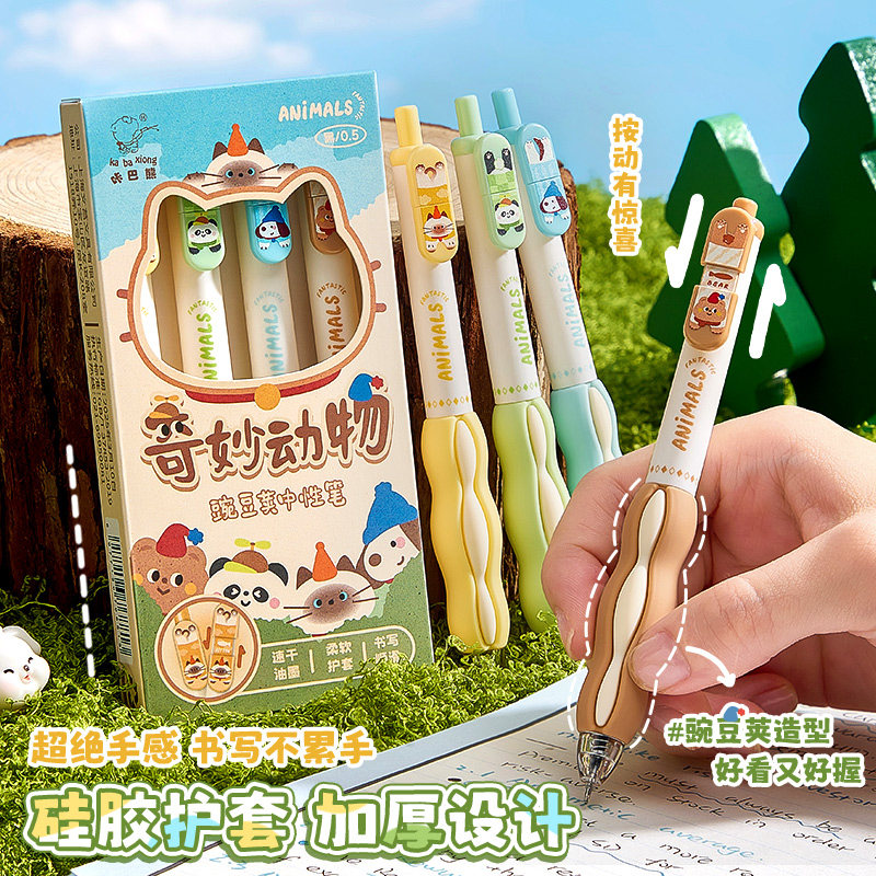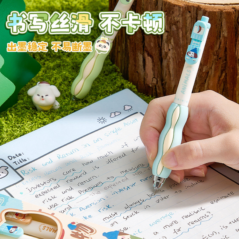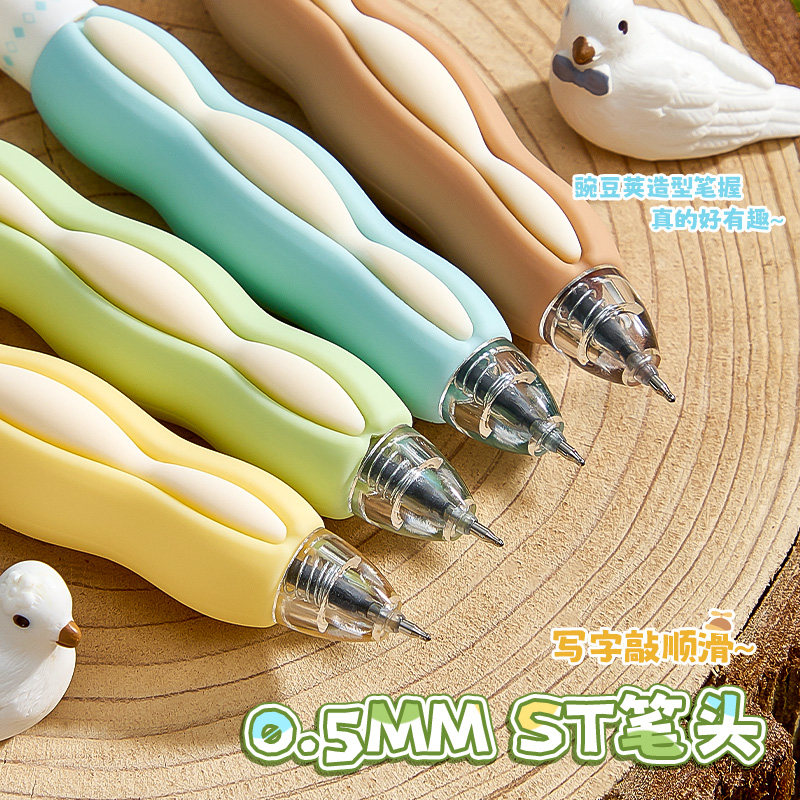 📚 豌豆荚软握按动中性笔ins高颜值硅胶护套学生考试专用ST尖刷题笔0.5黑笔圆珠笔正姿速干顺滑好写学霸好玩的笔