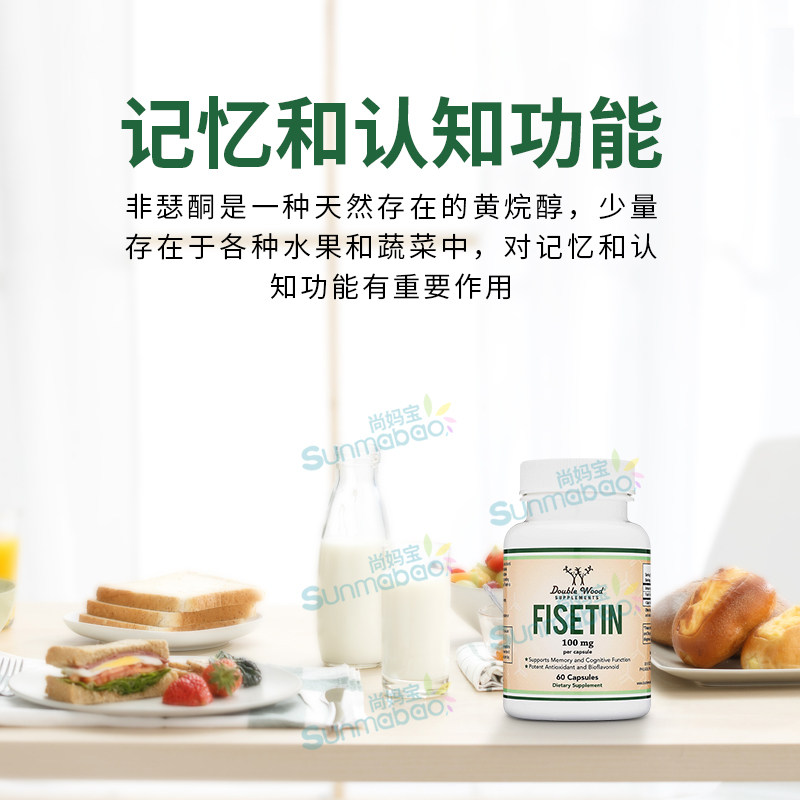 📚 美国直邮Double Wood双木Fisetin漆黄素 非瑟酮衰老心脑皮肤健康