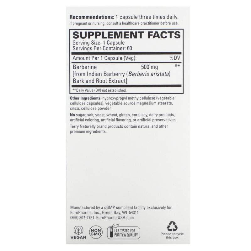 📚 Terry Naturally,小檗碱,500 毫克,60 粒胶囊