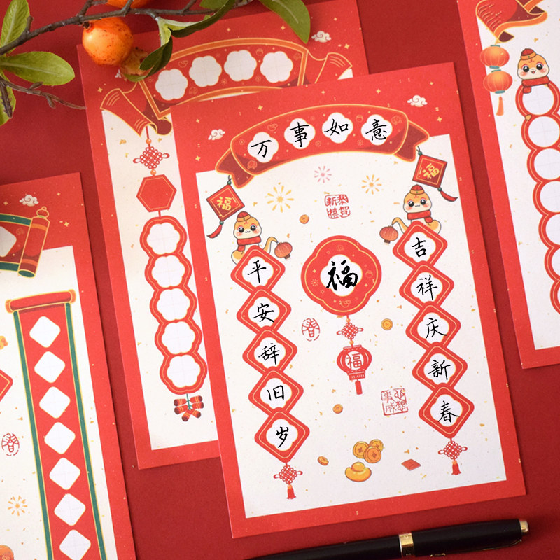📚 恭贺新禧对联硬笔书法练字纸新年喜庆空白钢笔毛笔学生作品展示纸