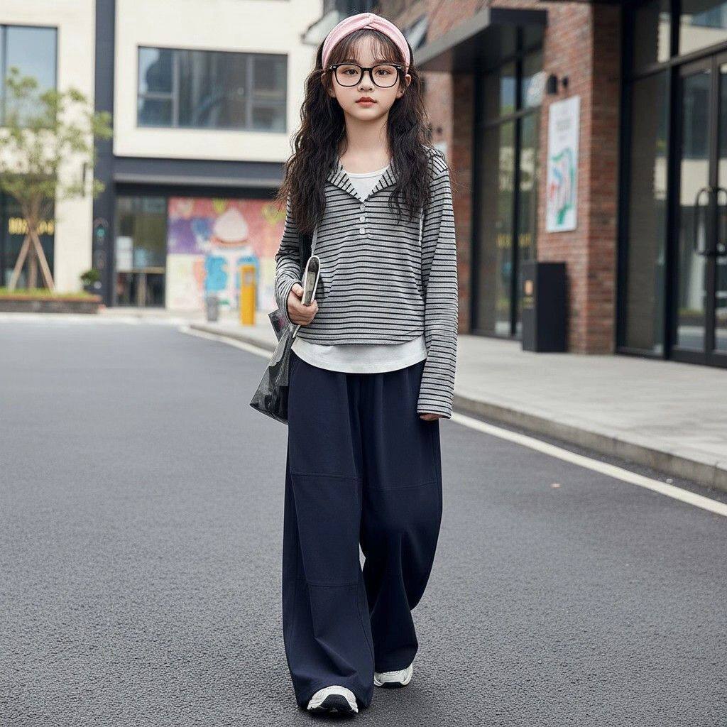 📚 女童条纹连帽T恤卫衣2026新款儿童春秋季韩系穿搭女孩假两件上衣