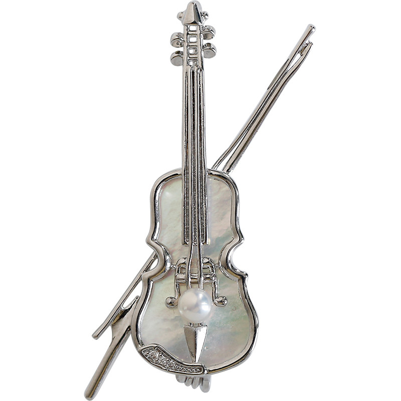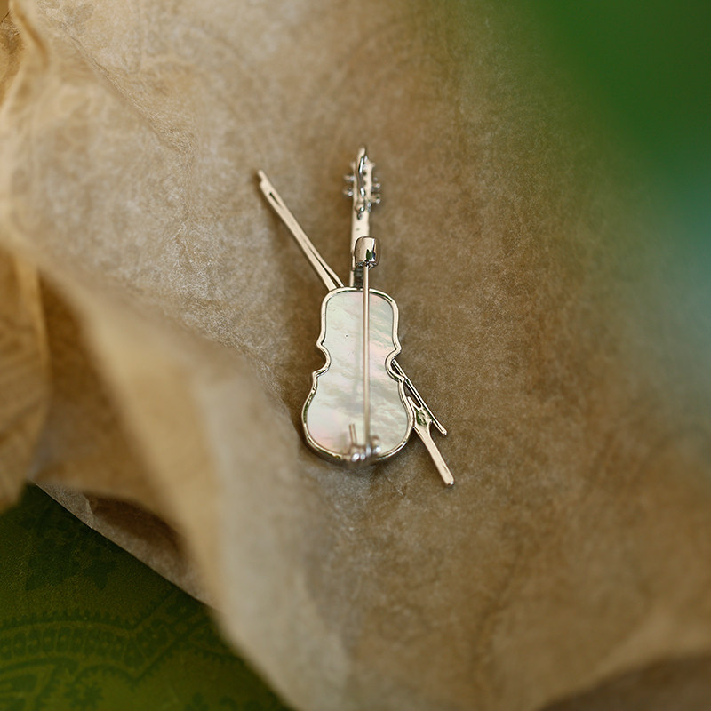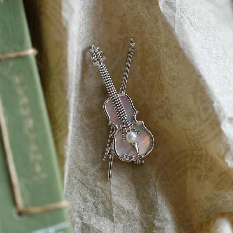 📚 清弦丨软语设计古典艺术美学天然珍珠白蝶贝立体提琴胸针吊坠两用