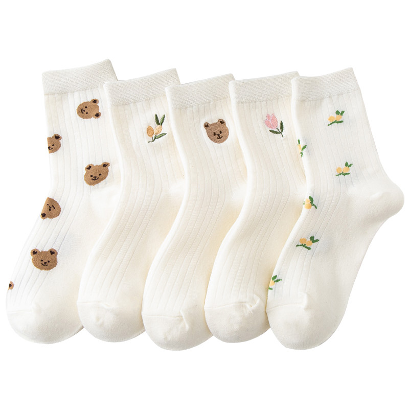 📚 可爱小熊袜子女生夏薄款2026新款优质纯棉防脚气中筒袜高颜值白色
